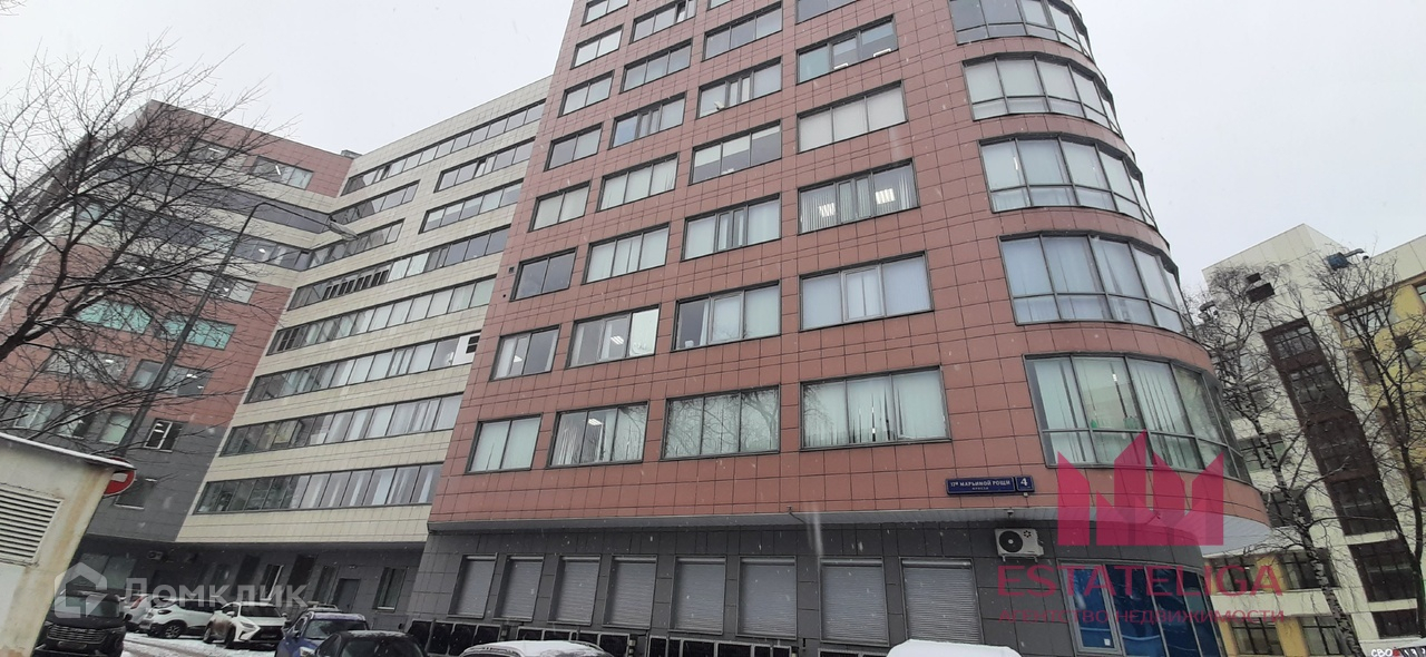 Офисный центр «Марьина Роща» – это красивое девятиэтажное треугольное здание 2012 года постройки с панорамными окнами, закругленными витражными эркерами и оригинальным рельефом фасадов, облицованных панелями пастельных коричневых, бежевых и серых оттенков. Общая площадь строения – 17500 В подземном уровне оборудован паркинг на 100 автомобилей, есть наземная автостоянка на 65 машиномест.
