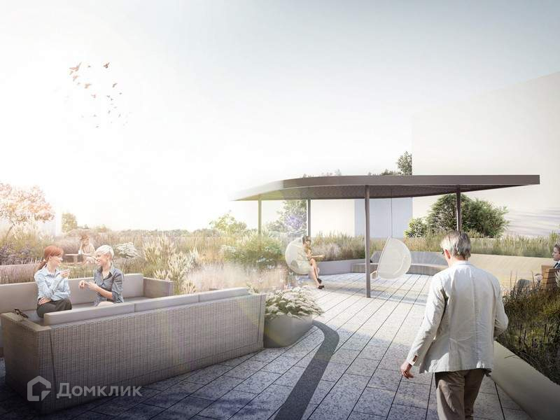 Для резидентов созданы озеленённая терраса на стилобате и благоустроенная зона на крыше здания с видами на центр города.