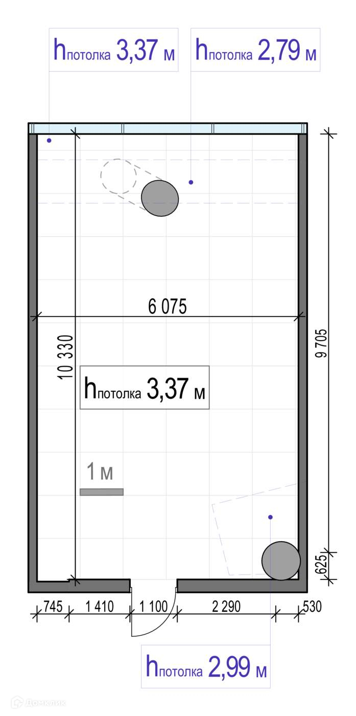 Высота потолков 3.37 м