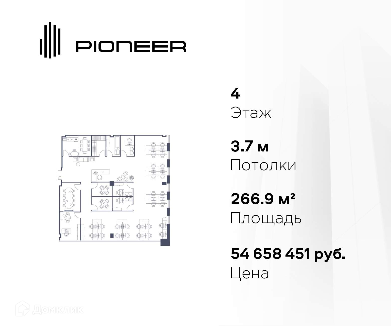 Офисное помещение площадью 266.9 кв. м в OSTANKINO BUSINESS PARK от надежного застройщика PIONEER.