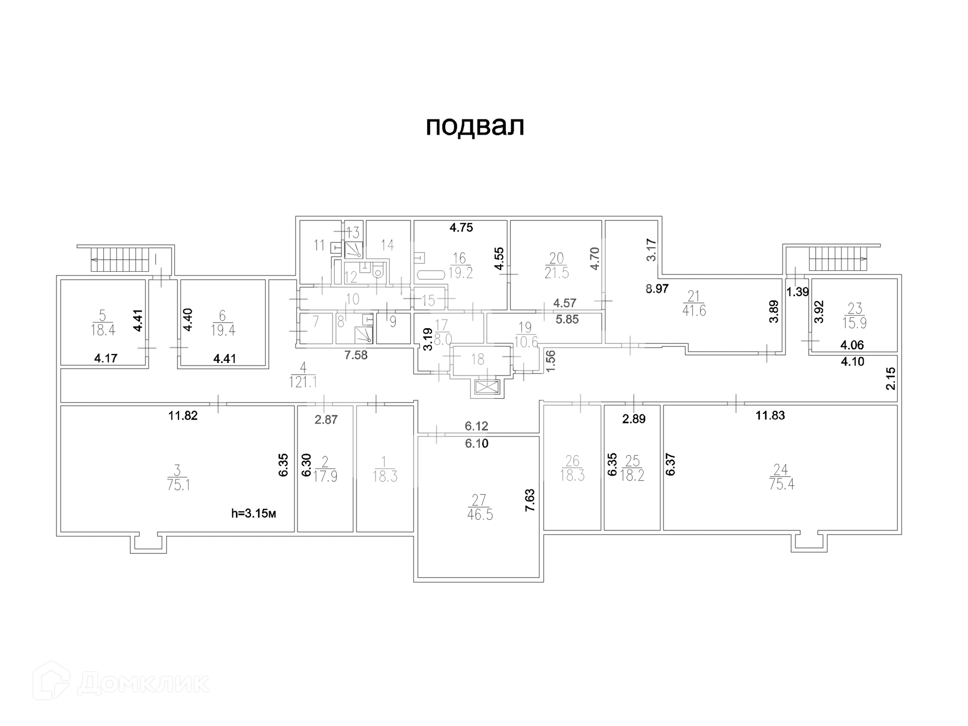 Подвал: 584.0 (высота потолков 315)