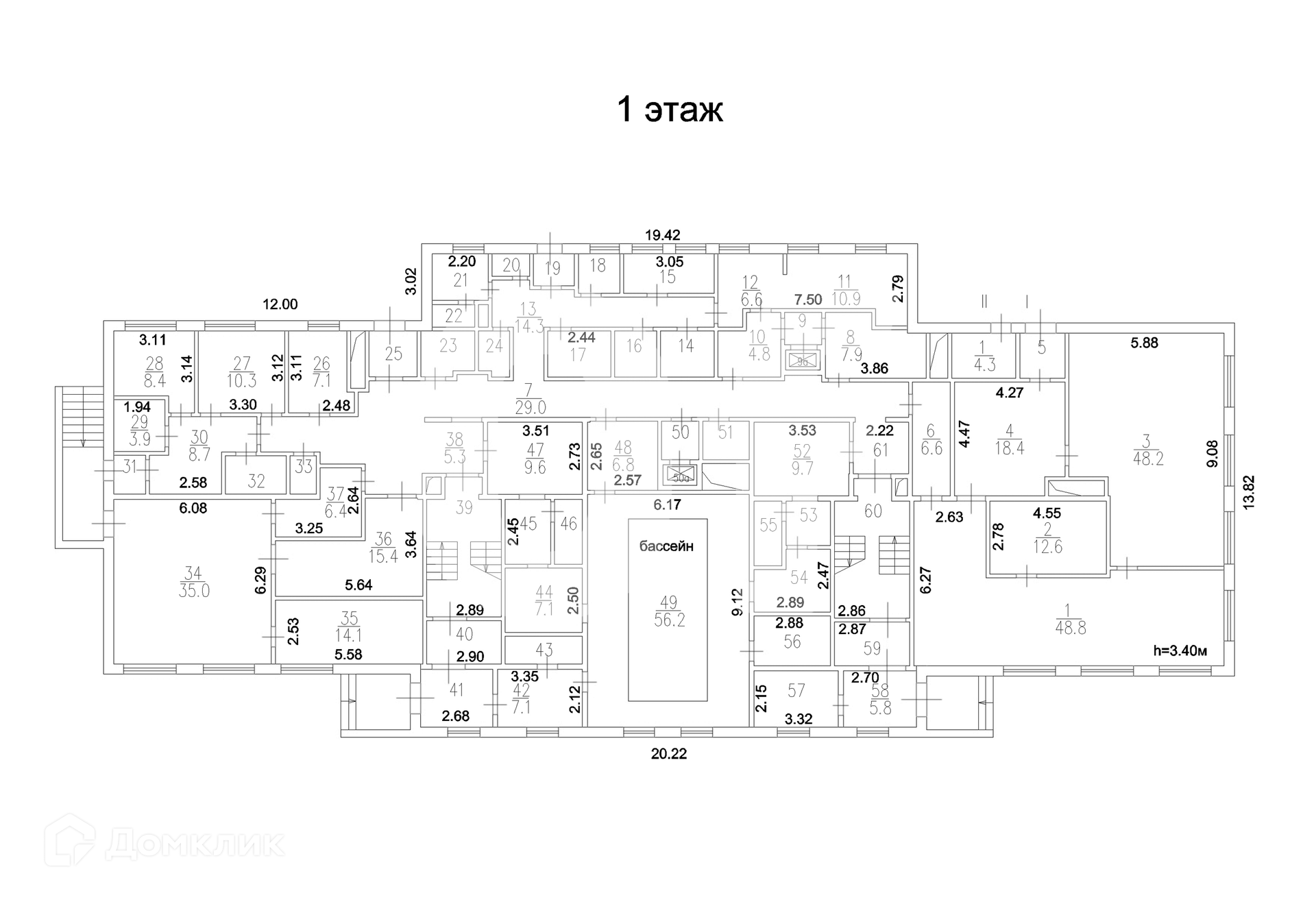 1 этаж : 564.4 (высота потолков 340)