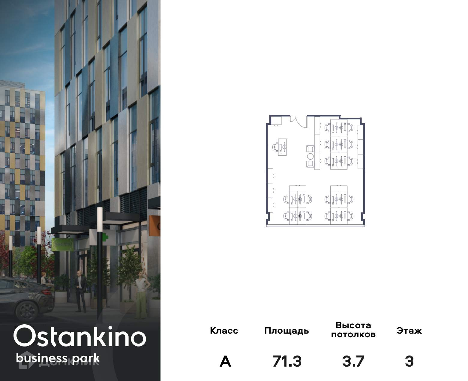 Офисное помещение площадью 71.3 кв. м в OSTANKINO BUSINESS PARK от надежного застройщика PIONEER.