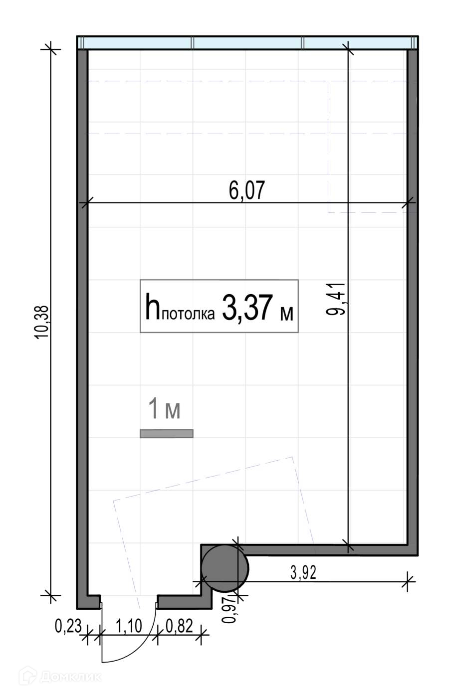Высота потолков 3.37 м