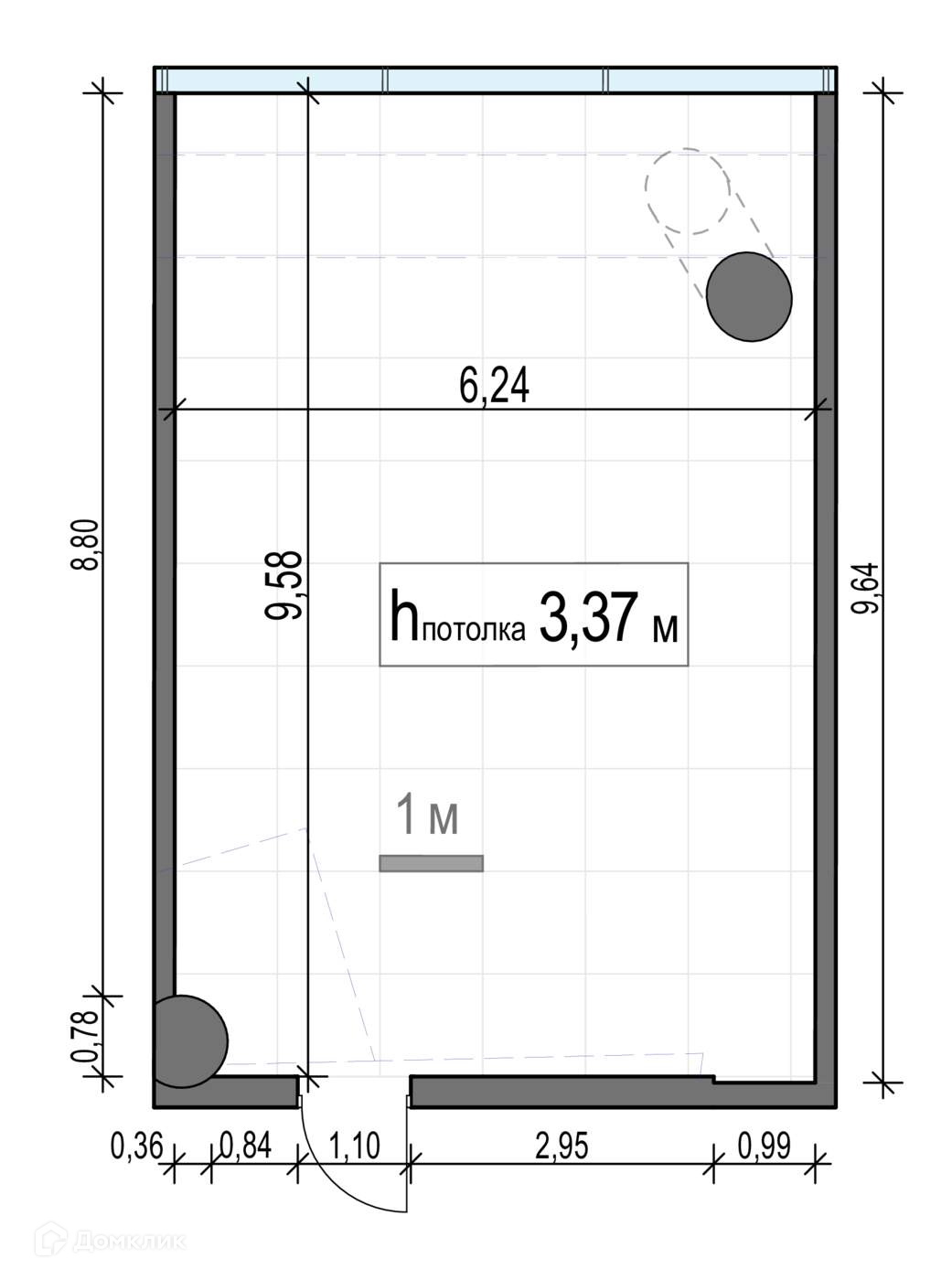Высота потолков 3.37 м