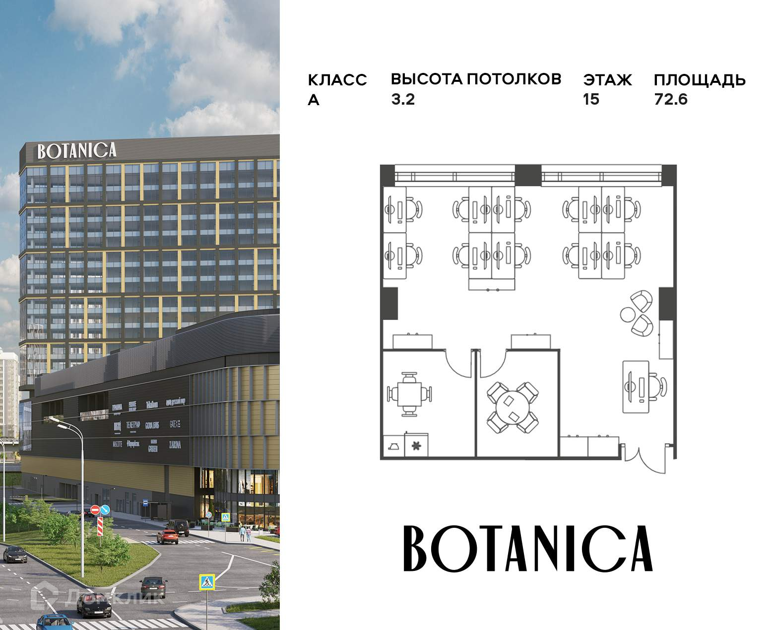 Офисное помещение площадью 72.61 кв. м в новом бизнес-центре BOTANICA от застройщика PIONEER.