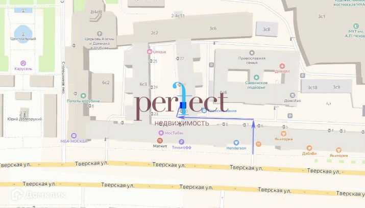 Помещение свободного назначения площадью 148 кв. м. (-1 этаж) находится в жилом доме по адресу: Тверская улица, дом 6 стр.5.