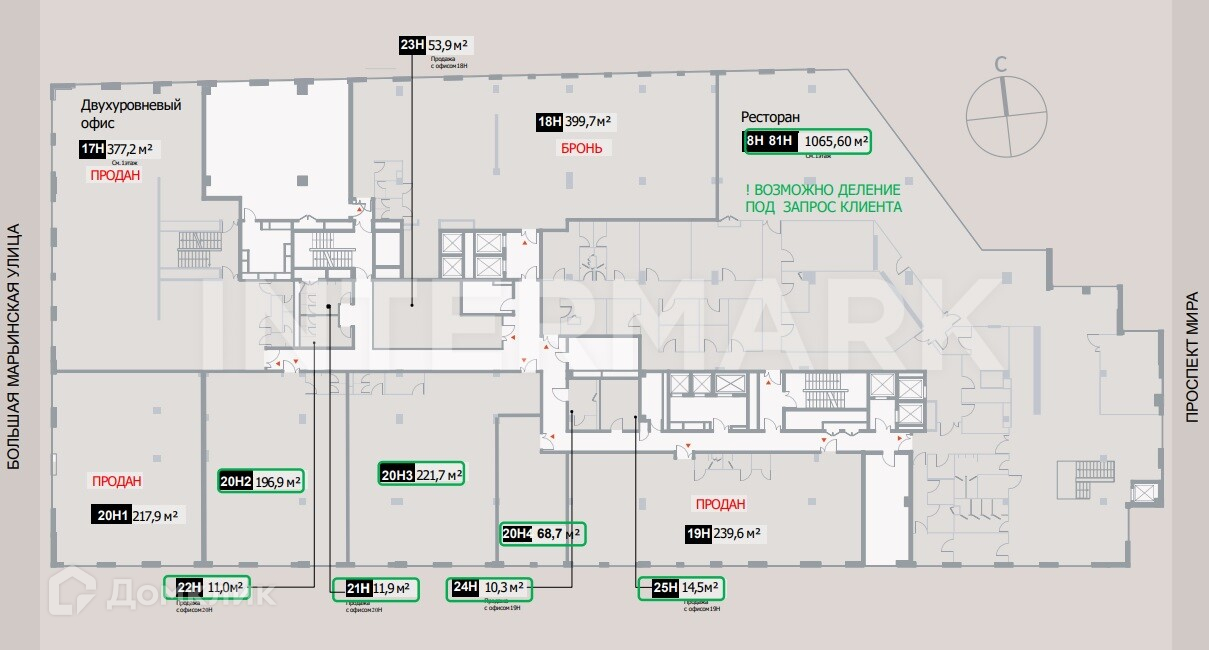 ID 2484. Продажа помещения в МФК HILL8. Расположено на первой линии пр-та Мира в прямой видимости от м. "Алексеевская". Премиальный комплекс, высокое качество строительства и отделки общих зон. Огромный автомобильный и пешеходный трафик вдоль объекта.