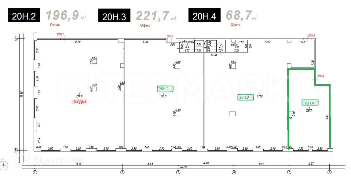Общая площадь 68.7 м2