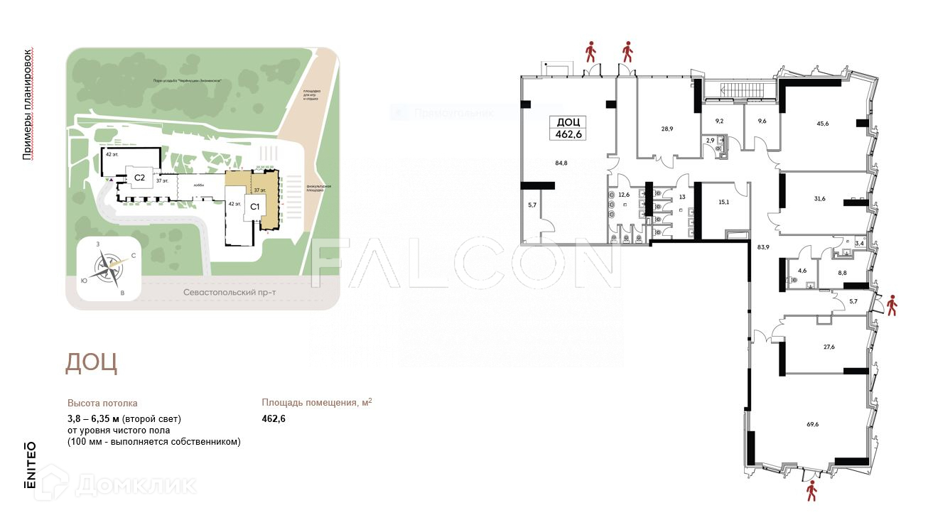 В продаже коммерческое помещение площадью 462,6 кв.м. на первом этаже многоэтажного жилого комплекса ​Eniteo на первой линии домов райн Котловка ЮЗАО, ​Большая Черемушкинская улица, вл 25 к 1/1​.