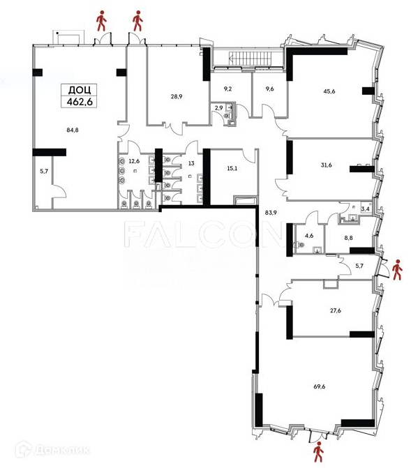 Площадь помещения 462,6 кв. м.
