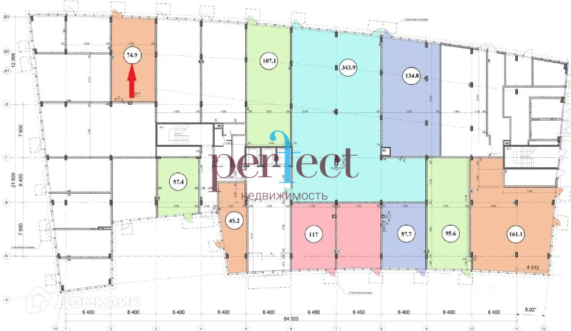 Общая площадь 74.9 м2