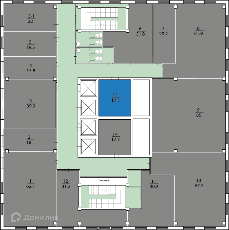 Общая площадь 18.3 м2