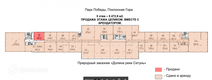 Номер в базе: 16521. Продается шикарный объект площадью 5472.9 м2. На 5 этаже. Звоните по всем вопросам!