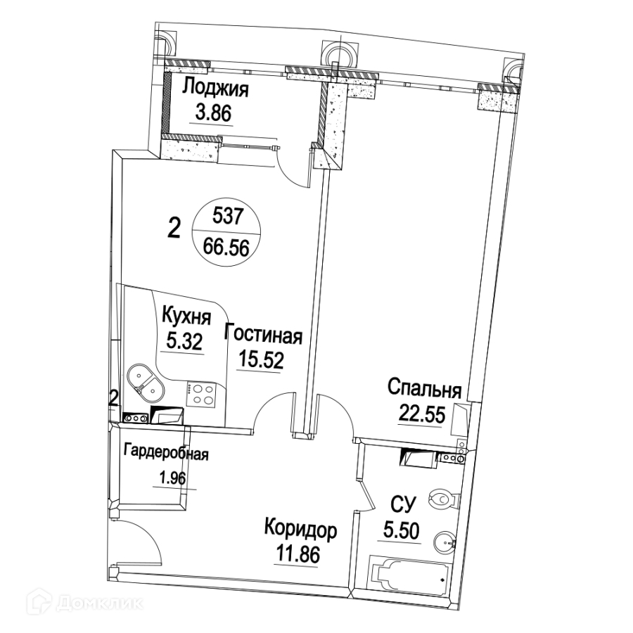Общая площадь 66.5 м2