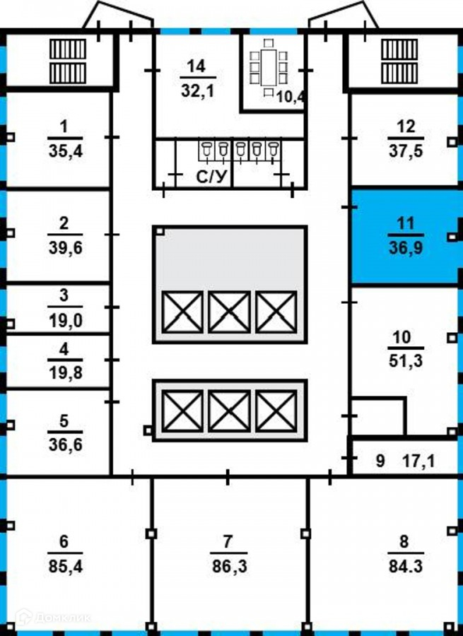 Общая площадь 36.9 м2