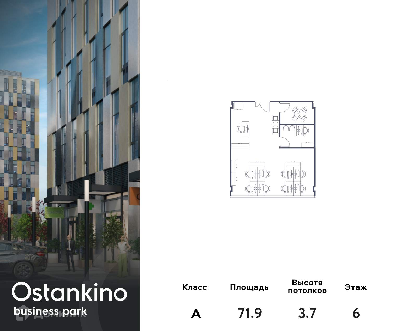 Офисное помещение площадью 71.9 кв. м в OSTANKINO BUSINESS PARK от надежного застройщика PIONEER.