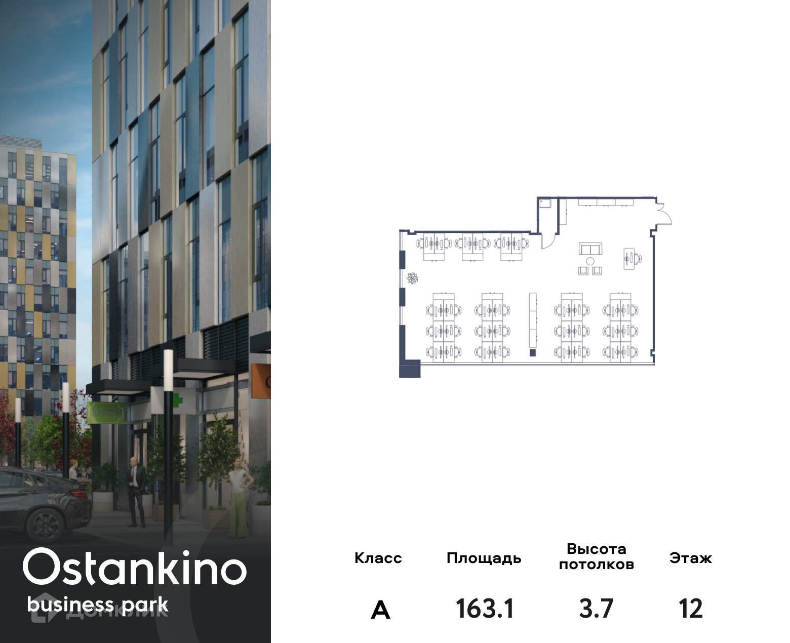 Офисное помещение площадью 163.1 кв. м в OSTANKINO BUSINESS PARK от надежного застройщика PIONEER.