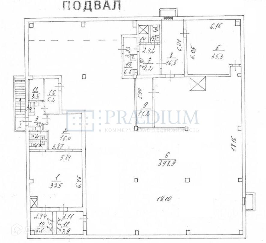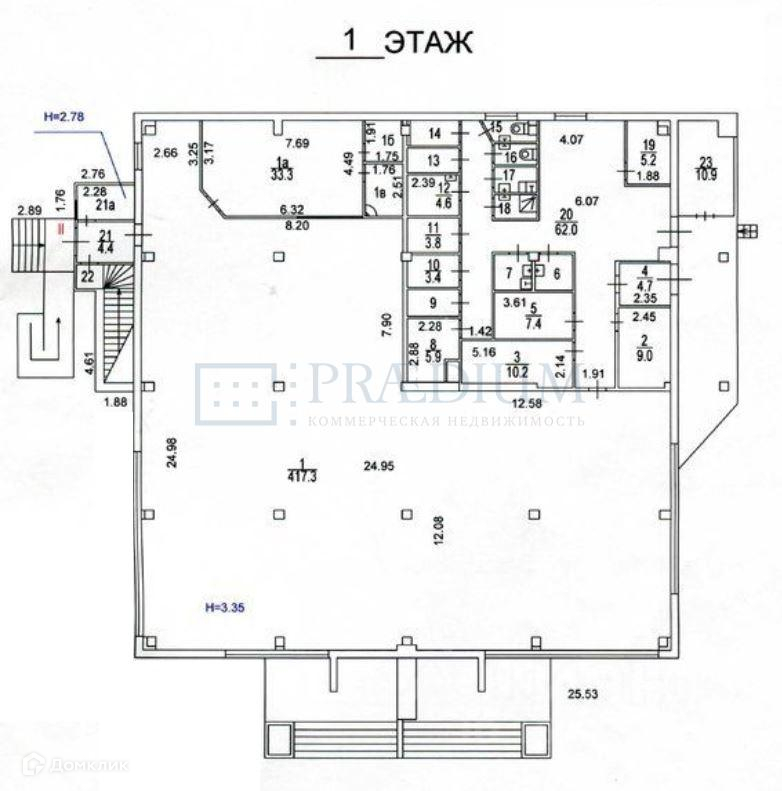 1 этаж - 597,1 кв.м., высота потолка 3,35 м;