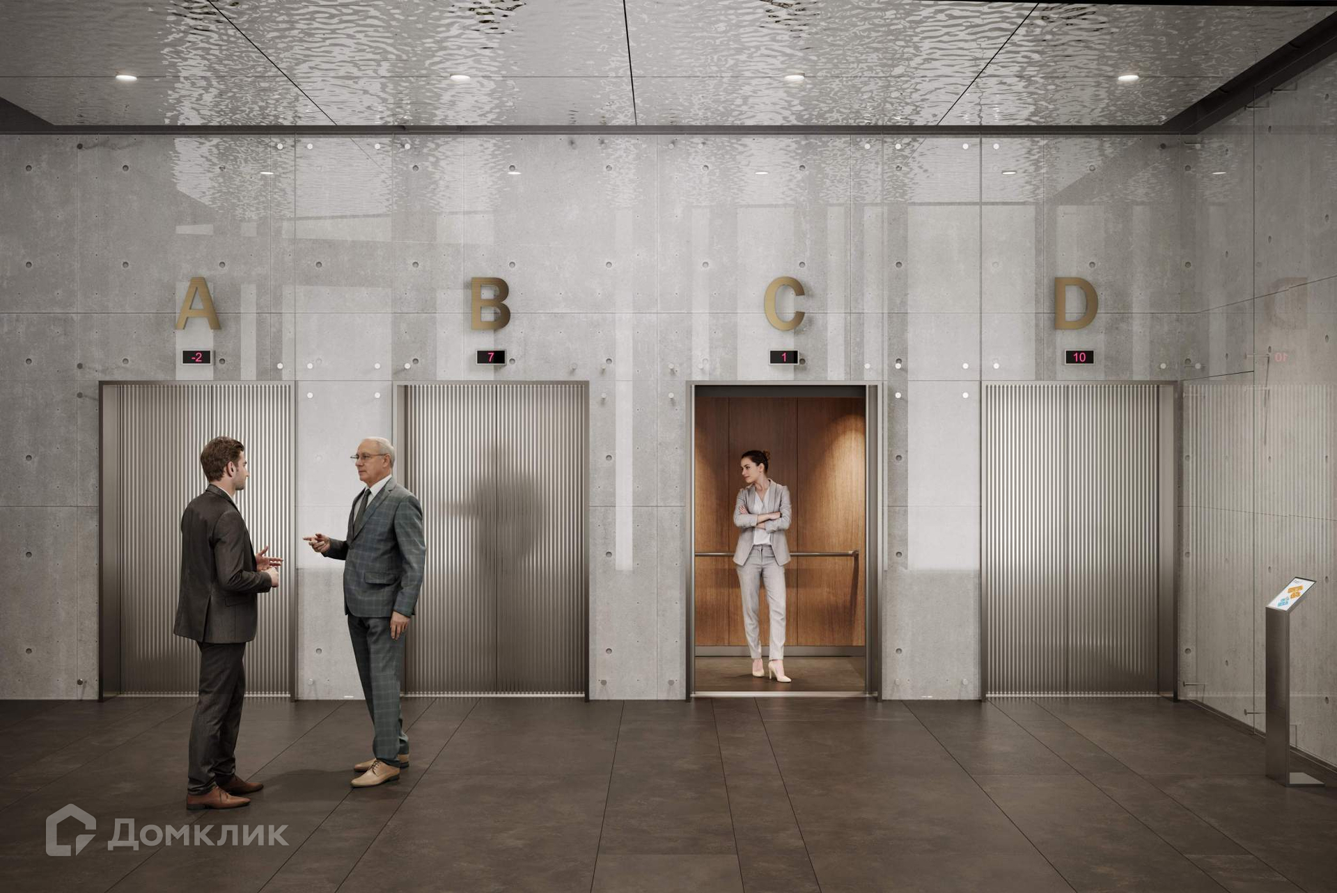 -Визитная карточка проекта - премиальная входная группа с площадью 1500кв.м. , объединяет 2 башни общим двухуровневым холлом.