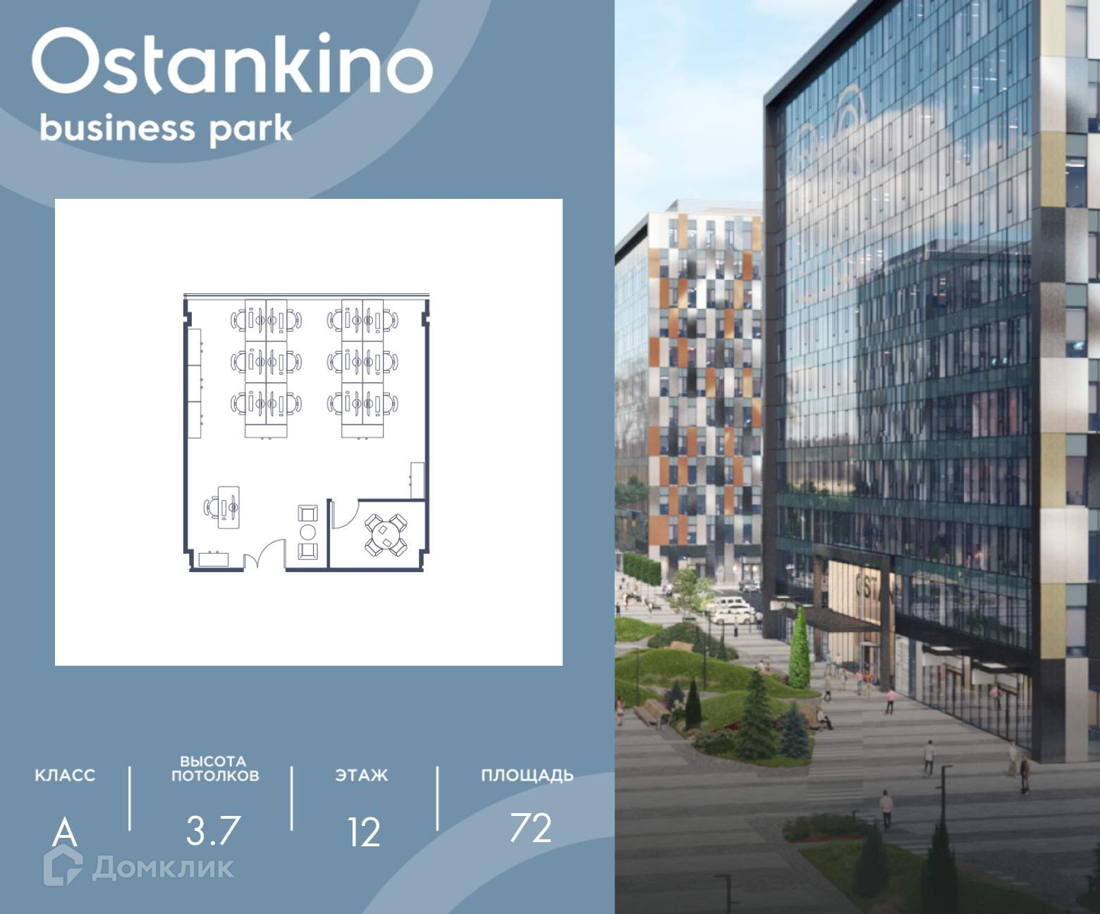 Офисное помещение площадью 72 кв. м в OSTANKINO BUSINESS PARK от надежного застройщика PIONEER.