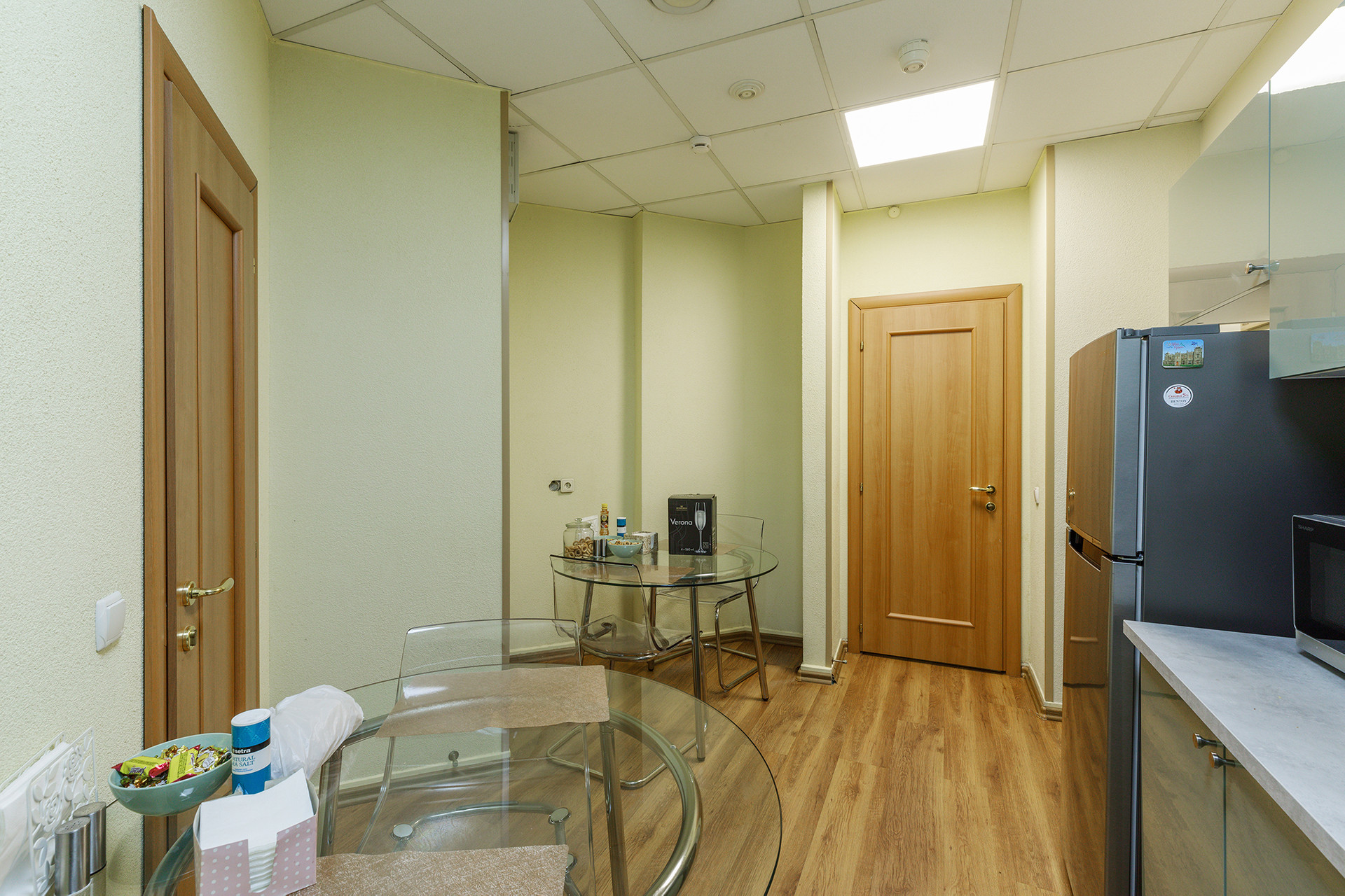 Планировка: вестибюль; 2 холла; 3 помещения open space открытой планировки 39/66/57 кв.м; 3 отдельных кабинета; переговорная; комната отдыха с кухней; 3 с/у.