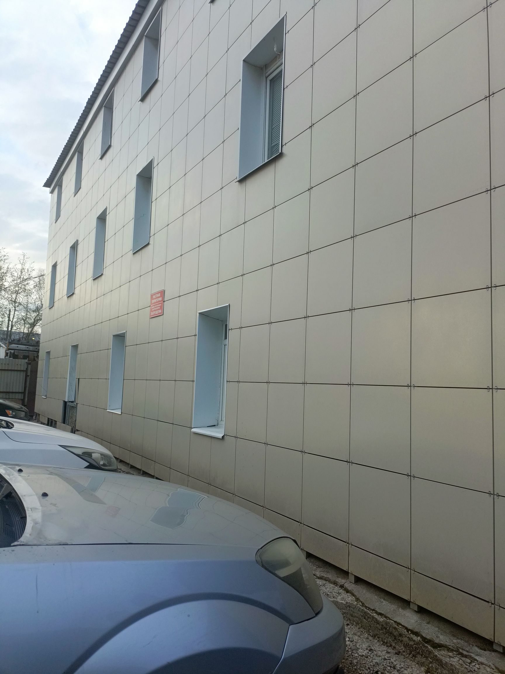 У здания бесплатная наземная парковка