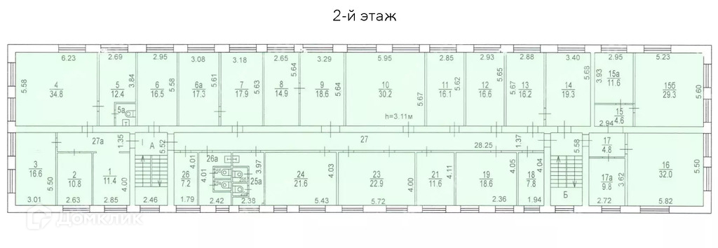 - Высота потолков: 3.1 м;