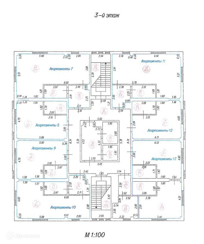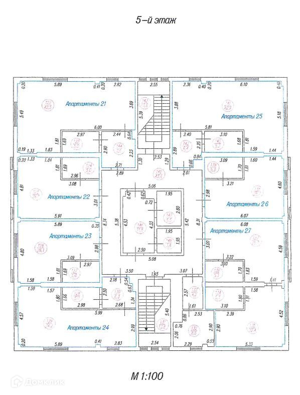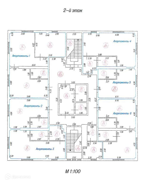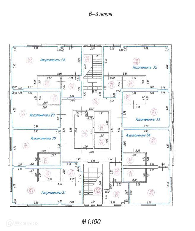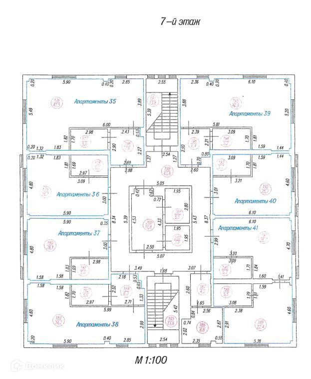 На 2-7 этажах – 41 апартамент.