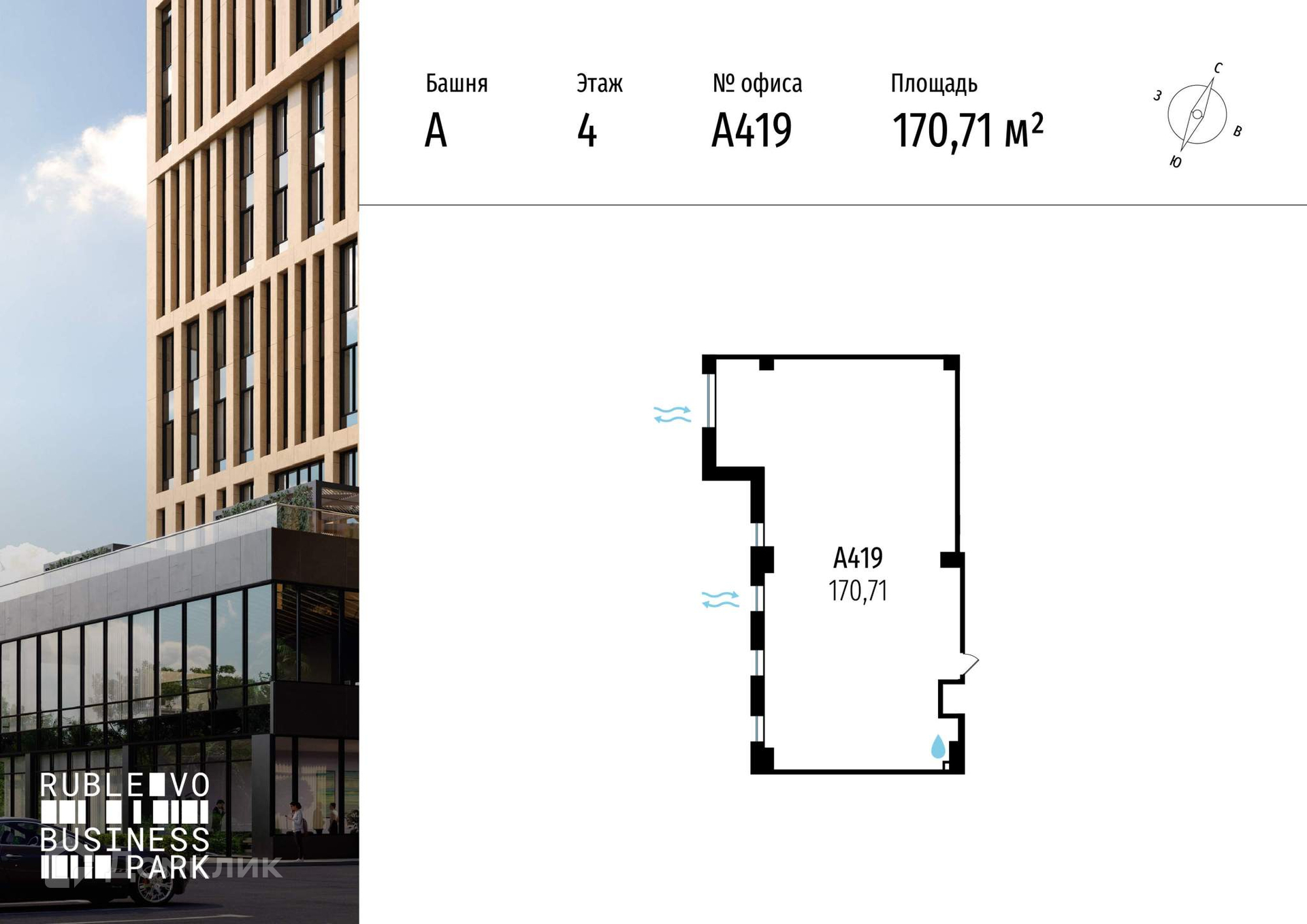 Предлагается в продажу офис в башне А.