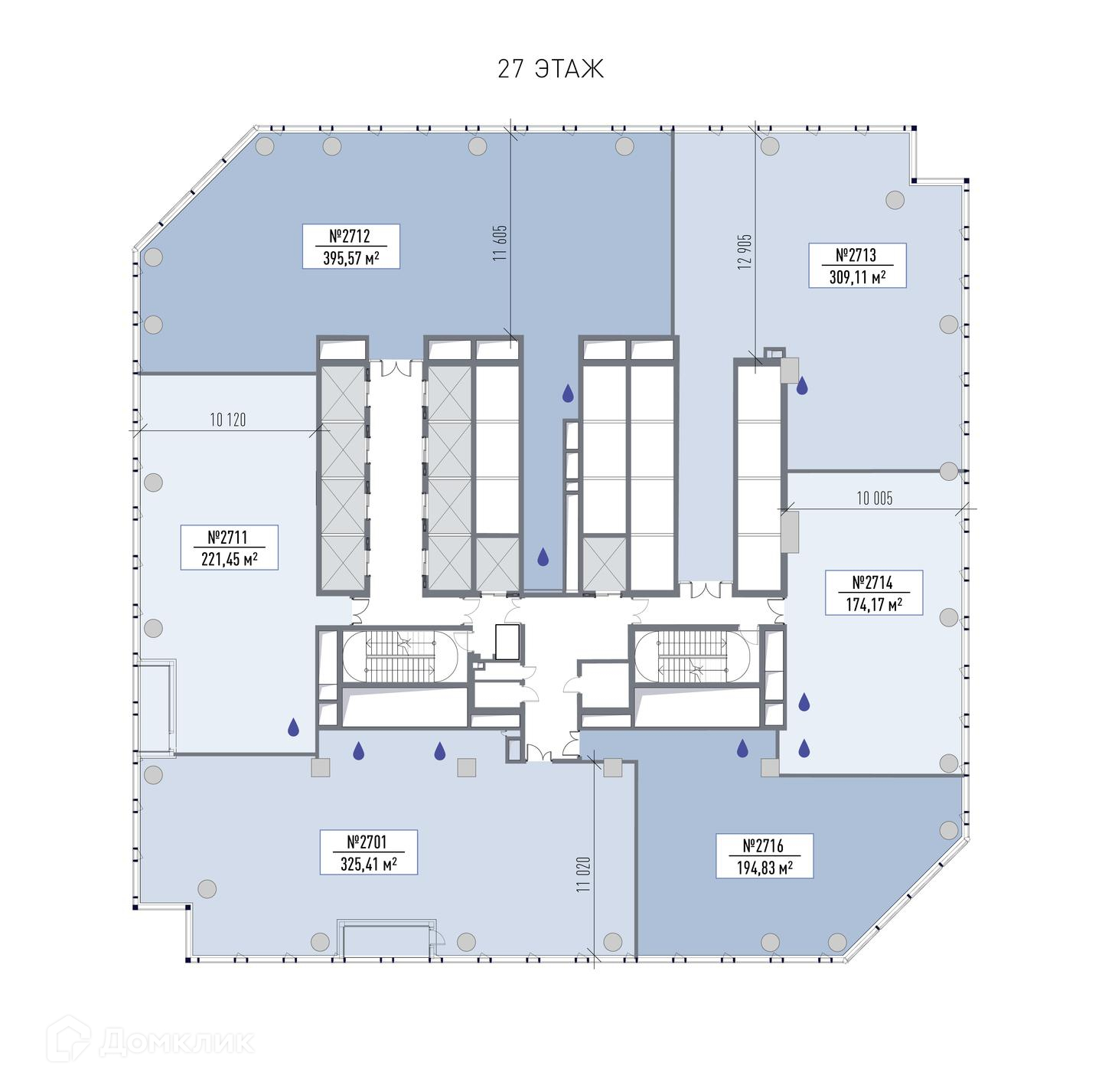 - Бесшумные двухэтажные лифты с системой распределение потоков
