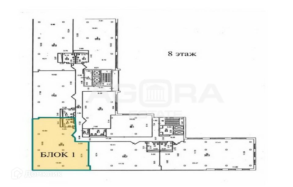 Офисное помещение площадью 236 м2 (блок 1 на плане этажа), расположено в здании БЦ  класса В+ в районе Коптево (САО), близко от м.Водный стадион, Коптево, Балтийская. Помещение находится на 8-м этаже. Высота потолков в офисе 3,2 м, отдельный вход. Большие панорамные окна, что делает офис светлым, просторным и визуально увеличивает пространство. Есть мокрая точка. Коммуникации – центральные. С ремонтом.