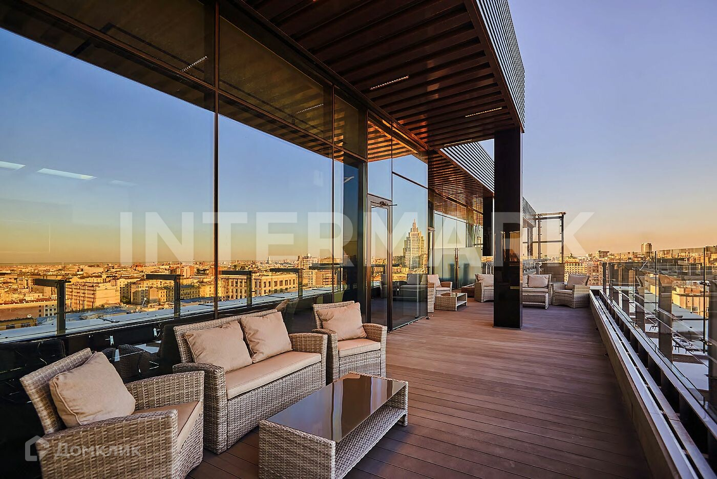 ID 3338. Продажа VIP офиса в уникальном апарт-комплексе с шикарными видовыми характеристиками в престижном районе Тверской улицы. В непосредственной близости от комплекса располагаются Московский Кремль и Храм Василия Блаженного, Патриаршие пруды, Большой театр, театр «Ленком», ЦУМ, ГУМ, «Эрмитаж». Офис находится на высоте 12-ти этажного дома, и включает в себя просторную террасу и выход на собственную эксплуатируемую кровлю 440 кв.м с захватывающими видами на город: башни Москва-Сити, гостиница Украина, Останкинская телебашня, Белый дом, Кремль. Высота потолков до 4.5 м. По желанию покупателя есть возможность установить дровяной камин в гостиной.