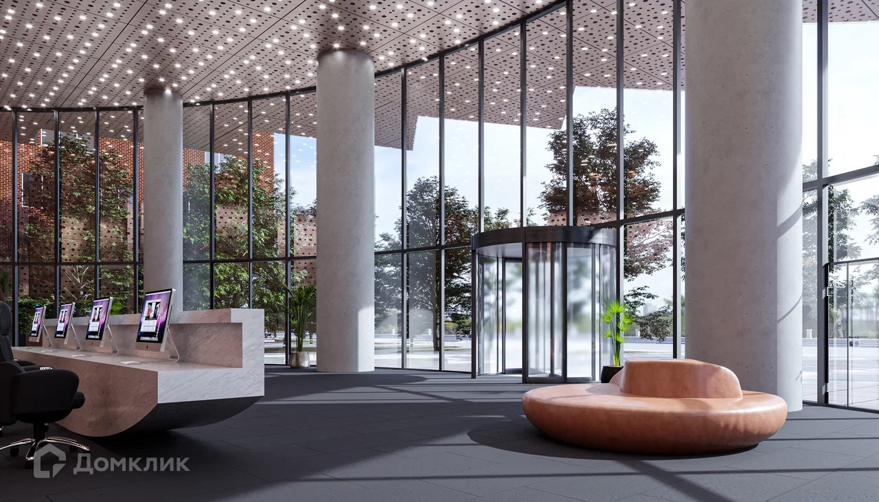 Здание имеет панорамное, солнцезащитное остекление.
