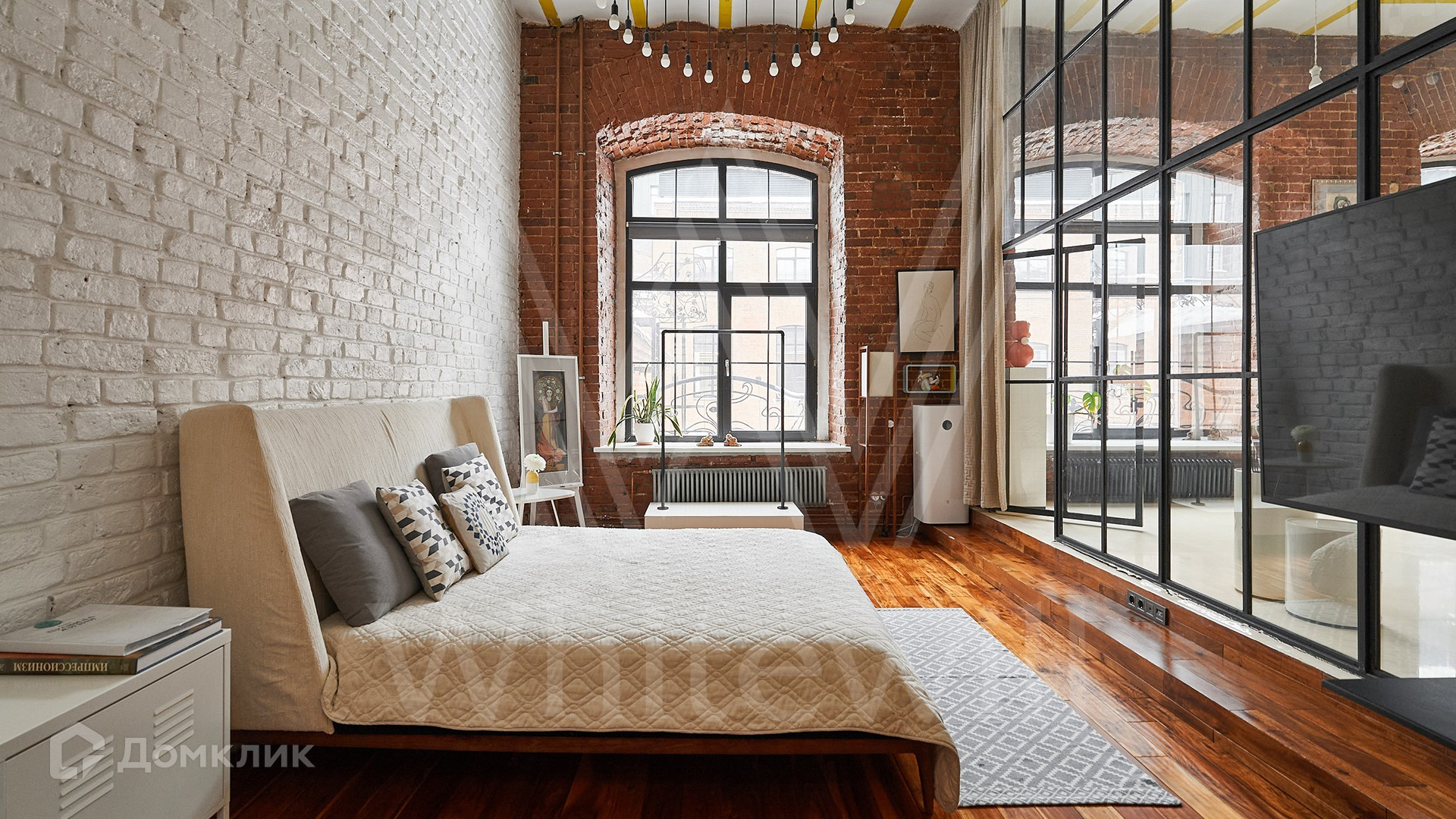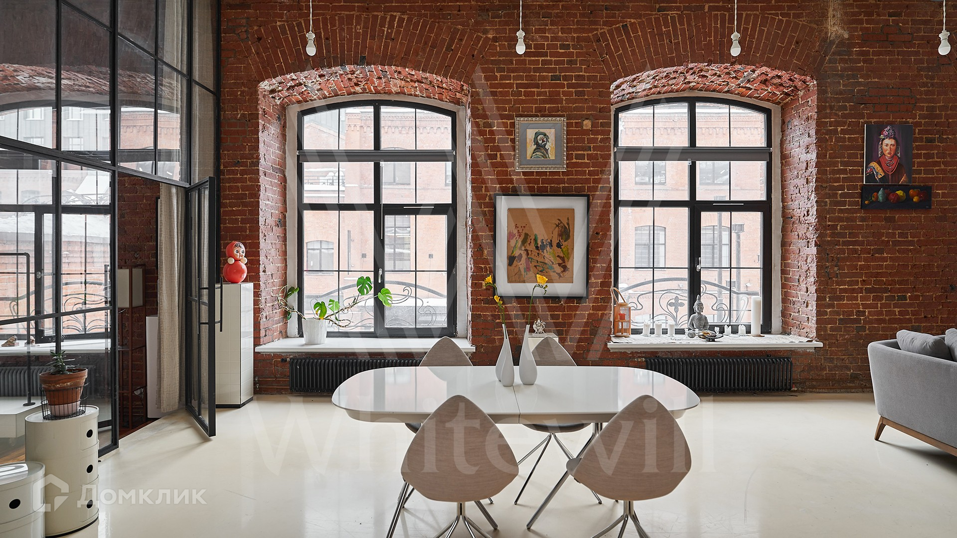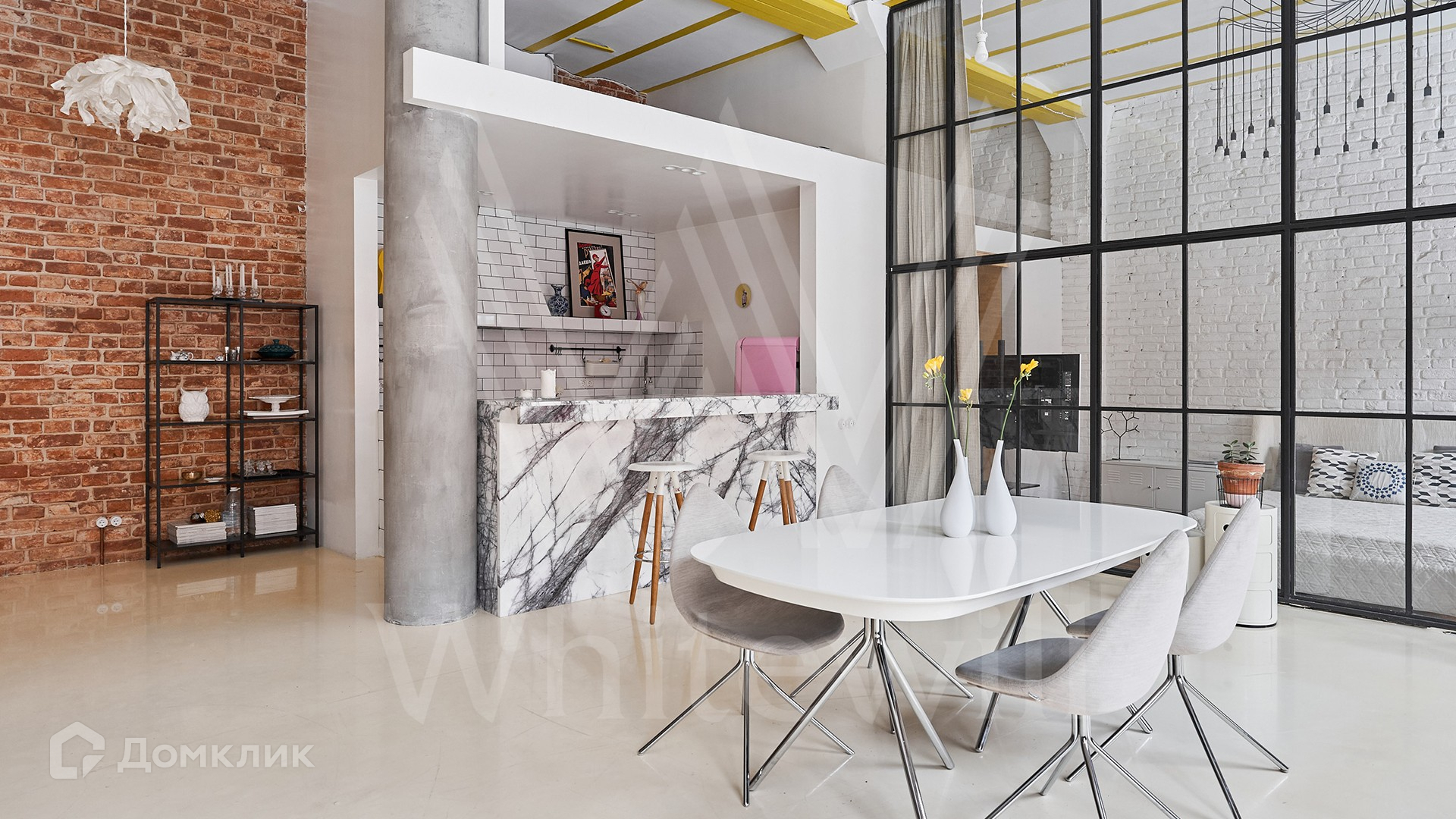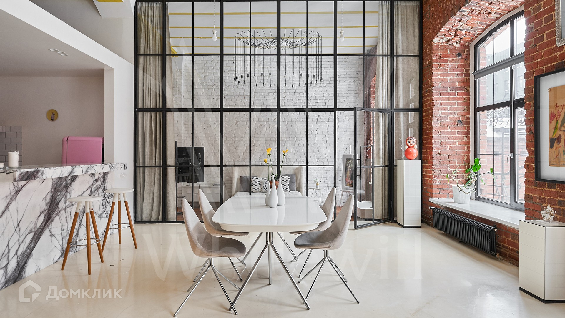 Помещение с открытой планировкой площадью 137 м² расположено на 2-м этаже в нежилом здании. Выполнена дизайнерская отделка в стиле loft — кирпичные стены, паркетная доска из ценных пород дерева. Интерьер укомплектован мебелью и техникой Smeg, зонирование выполнено стеклянной перегородкой. Благодаря высоким потолкам и панорамным окнам пространство наполнено естественным светом, открываются виды во внутренний двор. На территории квартала организована платная парковка.