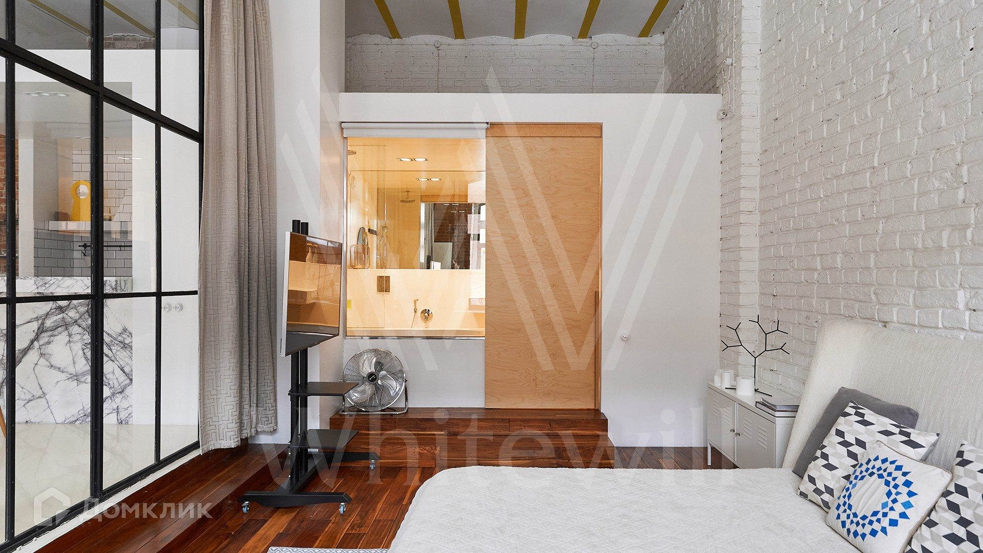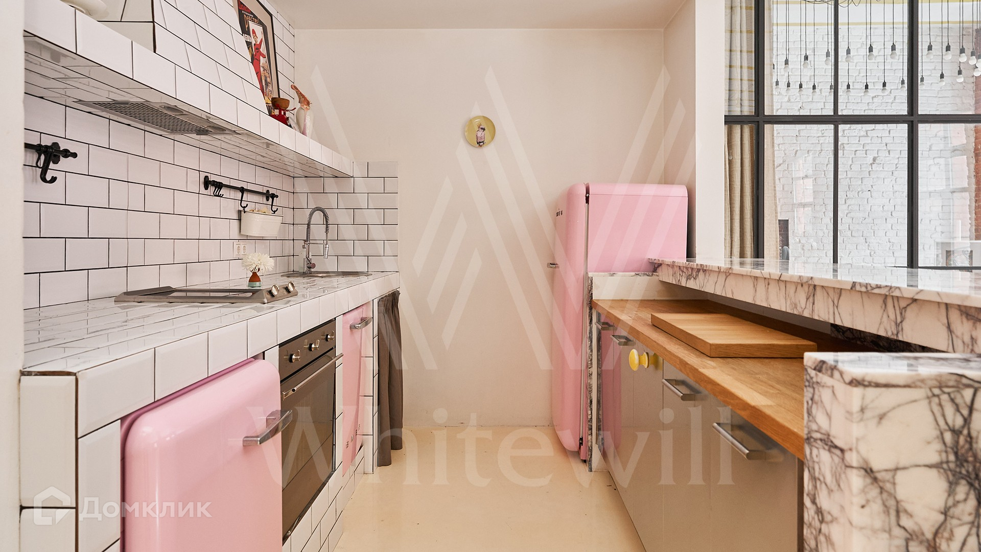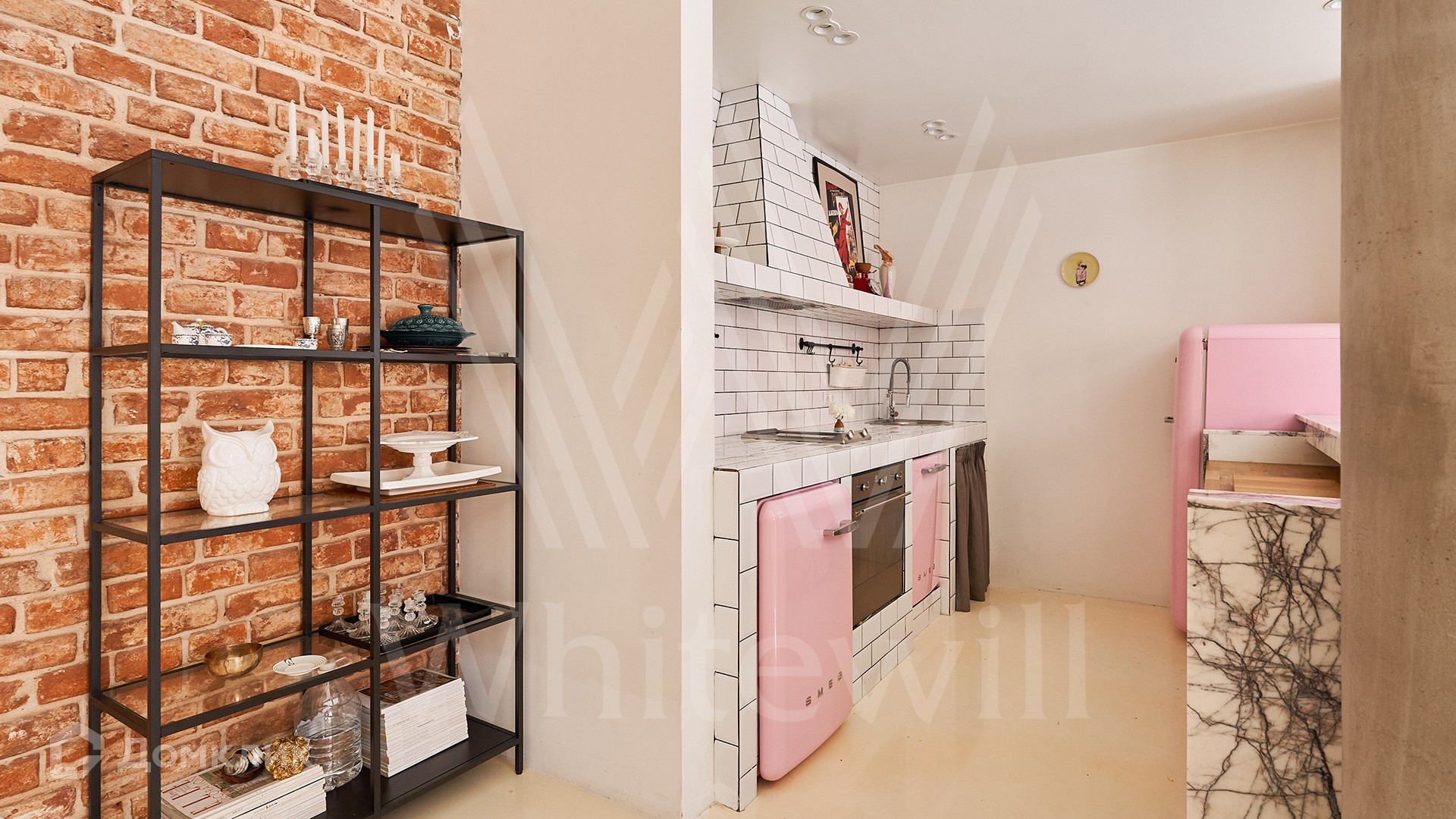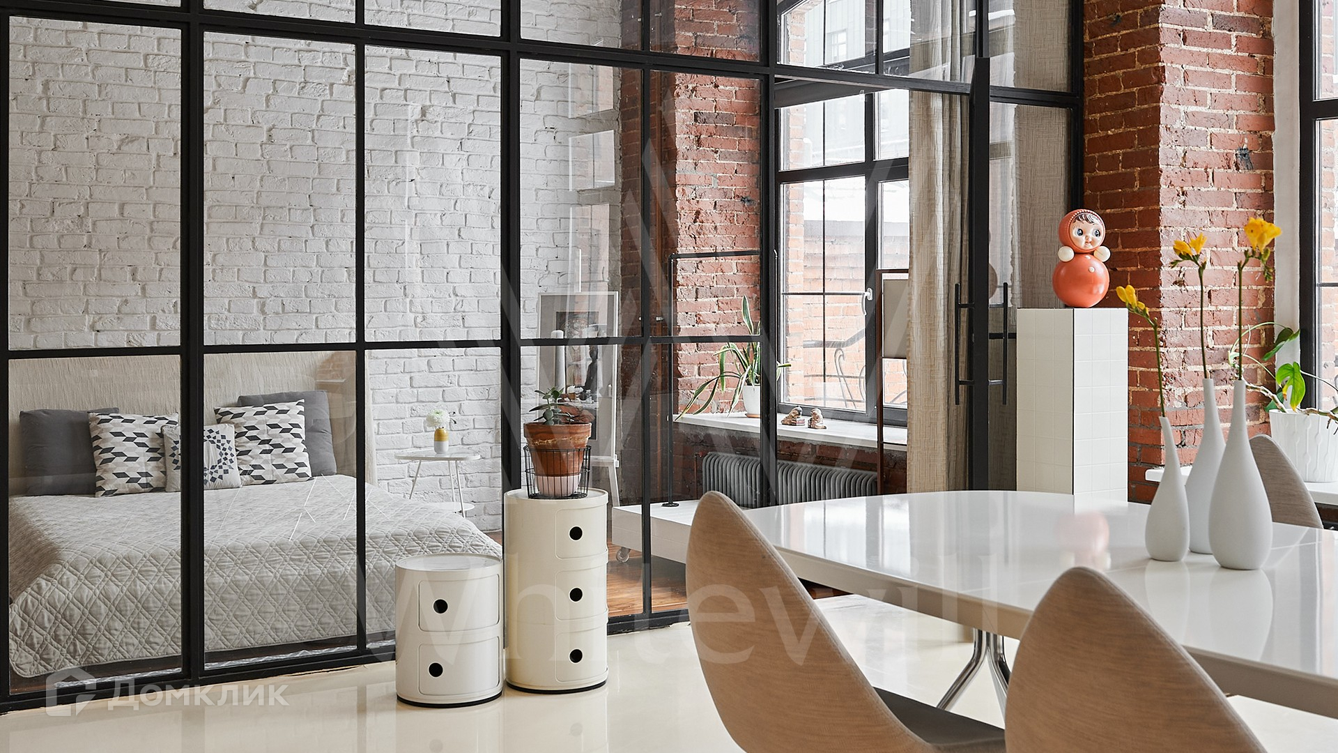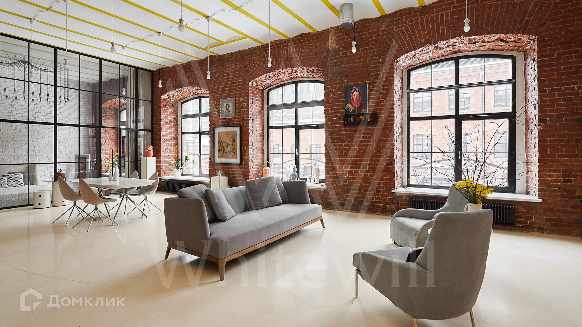 Помещение с открытой планировкой площадью 137 м² расположено на 2-м этаже в нежилом здании. Выполнена дизайнерская отделка в стиле loft — кирпичные стены, паркетная доска из ценных пород дерева. Интерьер укомплектован мебелью и техникой Smeg, зонирование выполнено стеклянной перегородкой. Благодаря высоким потолкам и панорамным окнам пространство наполнено естественным светом, открываются виды во внутренний двор. На территории квартала организована платная парковка.