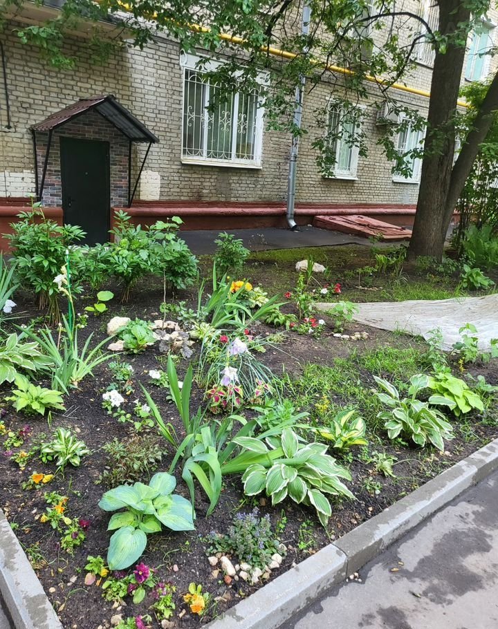 нескoлько клумб c цвeтами