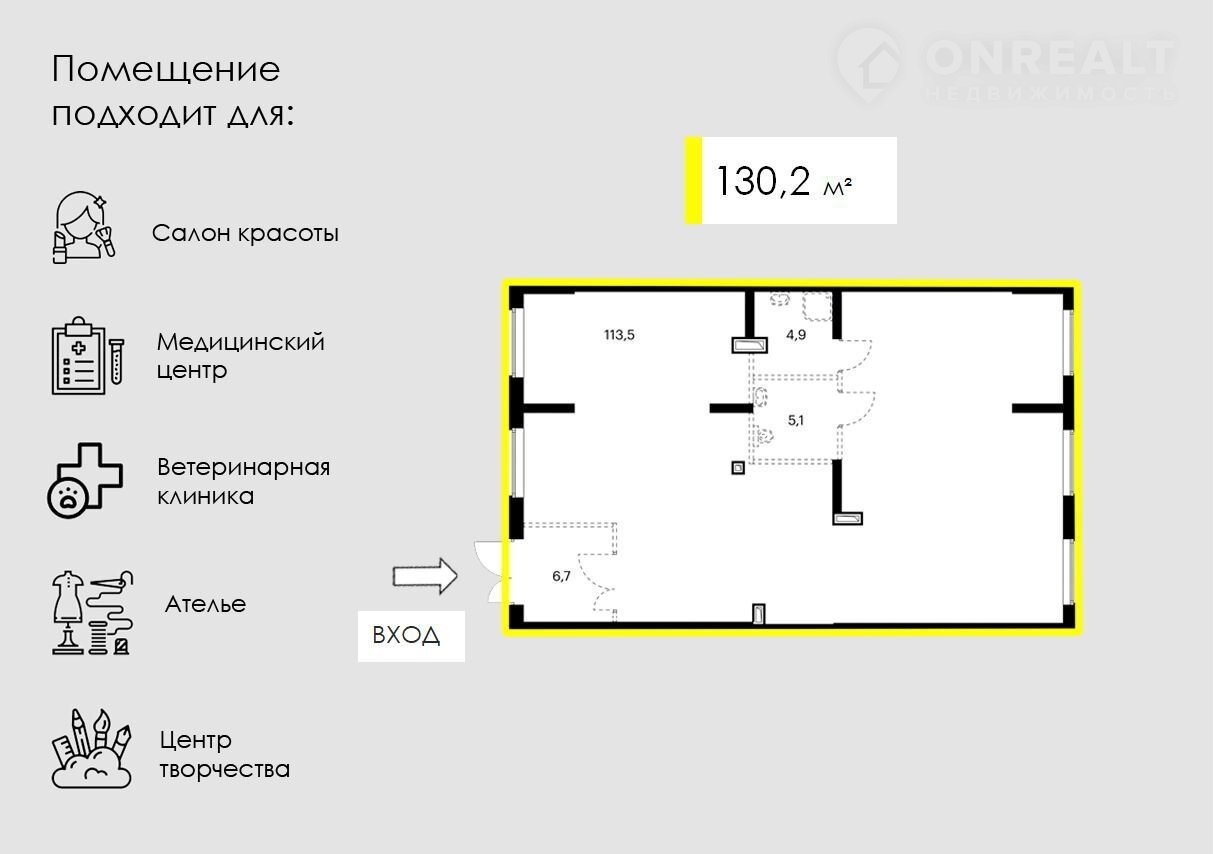 Потенциальный МАП - 455 700, помещение подходит под салон красоты, ветеринарную клинику, медицинский центр, ателье, центр творчества.