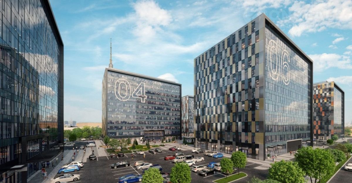 БЦ из шеcти 12-этажныx здaний, общей площадью 22 250 м2 каждое.