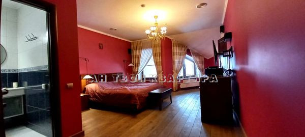 Четвёртый уровень - кабинет с библиотекой, спальня с встроенным гардеробом, санузел с душевой кабиной. Пятый уровень - две изолированные спальни с отдельными санузлами в одном из которых большая ванна, а в другом большая душевая с гидромассажной системой, с  итальянской и румынской мебелью, кондиционеры, большие гардеробные. Все гардеробные, встроенная мебель, кабинет производства М.Дорс (на гарантии производителя).