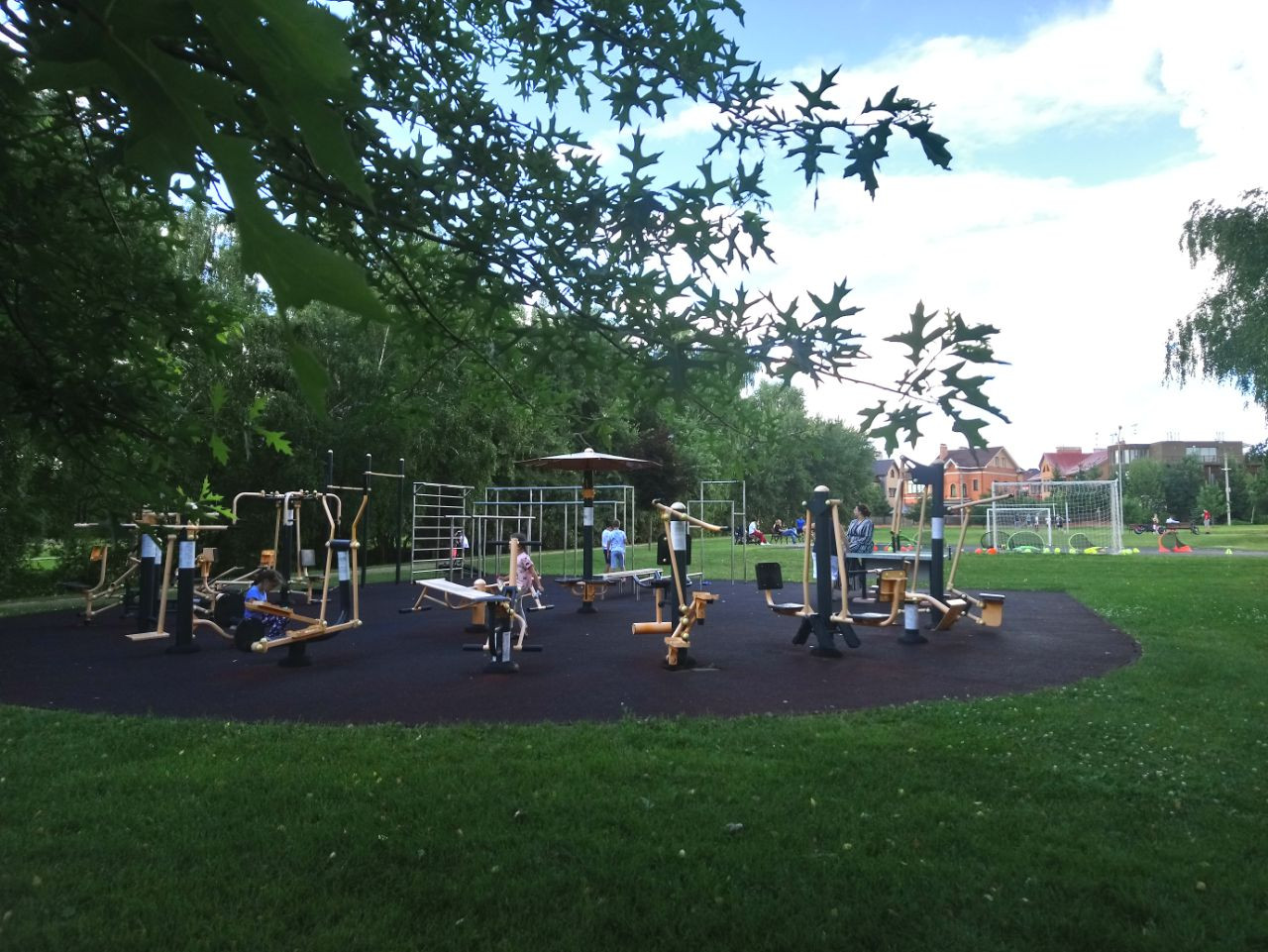 - хорошо оборудованные спортивные и детские площадки, теннисный корт, футбольное поле с искусственным покрытием, зимой заливается каток и устраивается безопасная горка для катания на санках,