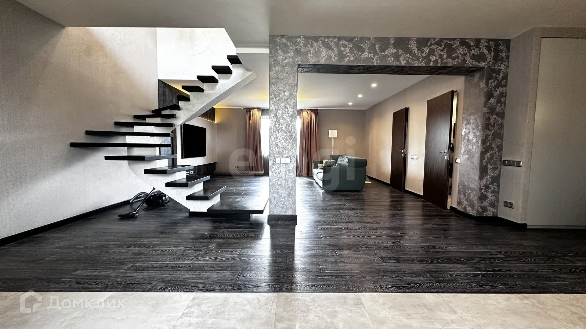 Внутри сделан дизайнерский ремонт. Полы уложены паркетной доской, двухуровневые потолки с точечной подсветкой, сан узел в плитке, установлена система теплый пол.