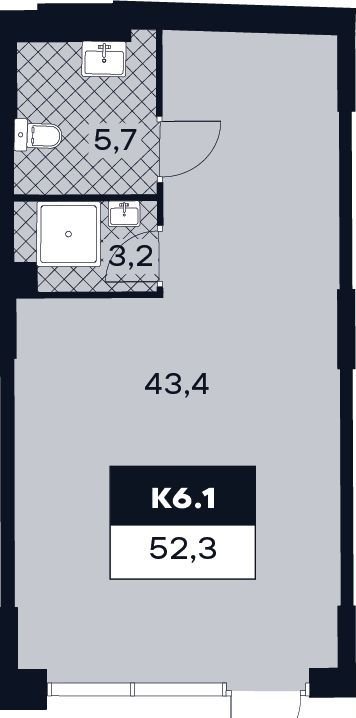 Общая площадь 52.3 м2