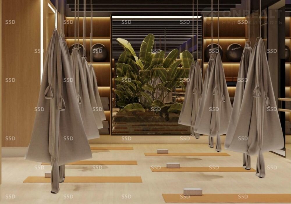 Помещение спроектировано с возможностью создания полноценной «мокрой зоны» (бассейн 25 метров с 3-мя дорожками), спа зоной, техническими помещениями включая помещения водоочистки и водоподготовки, оснащено передовой системой вентиляции и отвечает всем современным требованиям к помещениям фитнес-индустрии. Тренажерный зал, боксерский ринг, залы групповых программ, детский фитнес, зона Wоrkоut и площадки для групповых занятий на открытом воздухе. Планировка предусматривает зону для кафе или бара.