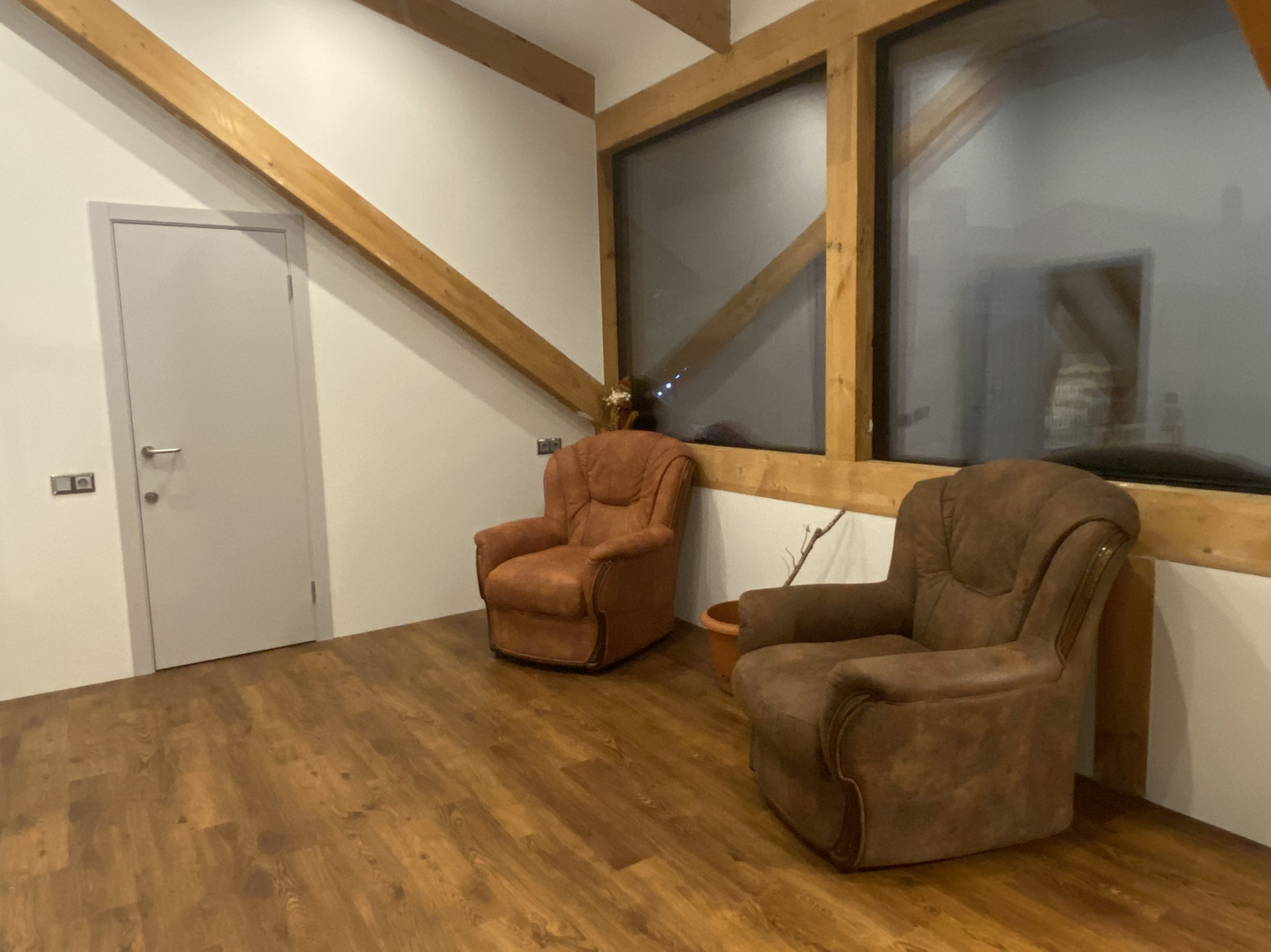 На втором этаже две спальни, санузел с душевой и зона отдыха.
