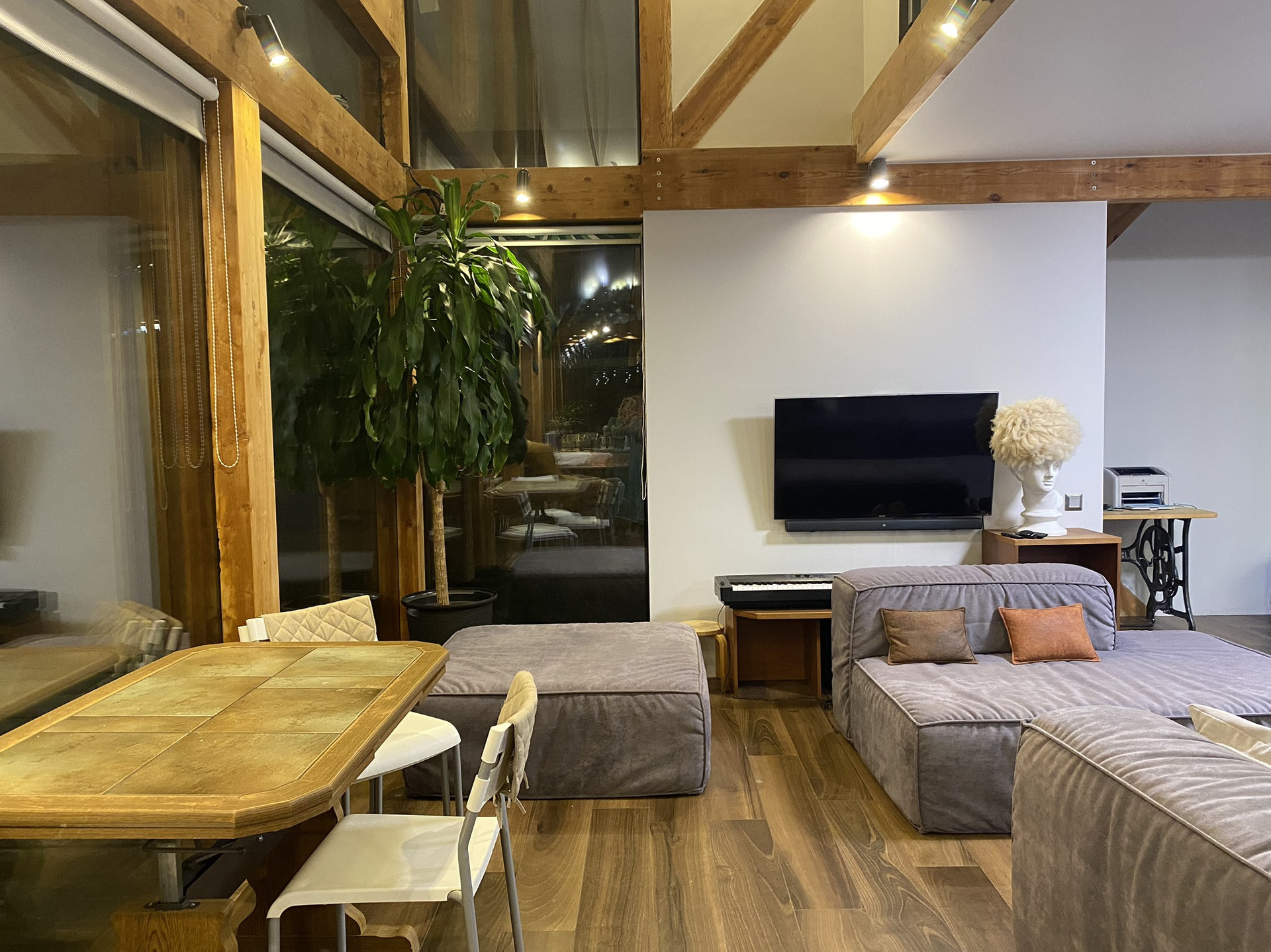 Тёплые водяные полы на первом этаже и в обоих санузлах, кондиционер, мягкий свет во всем доме, особая система вентиляции, - все для радостного пребывания домочадцев.