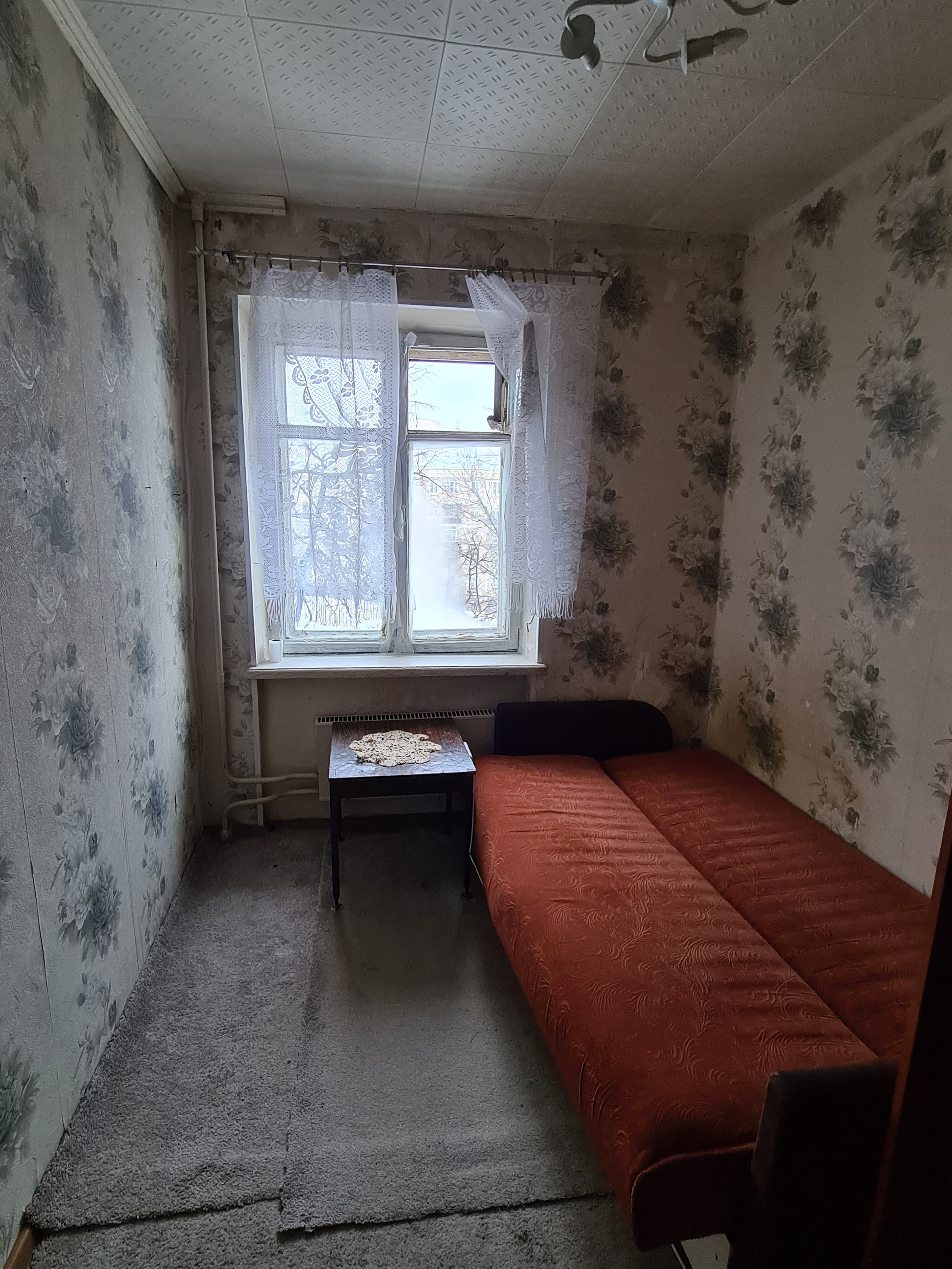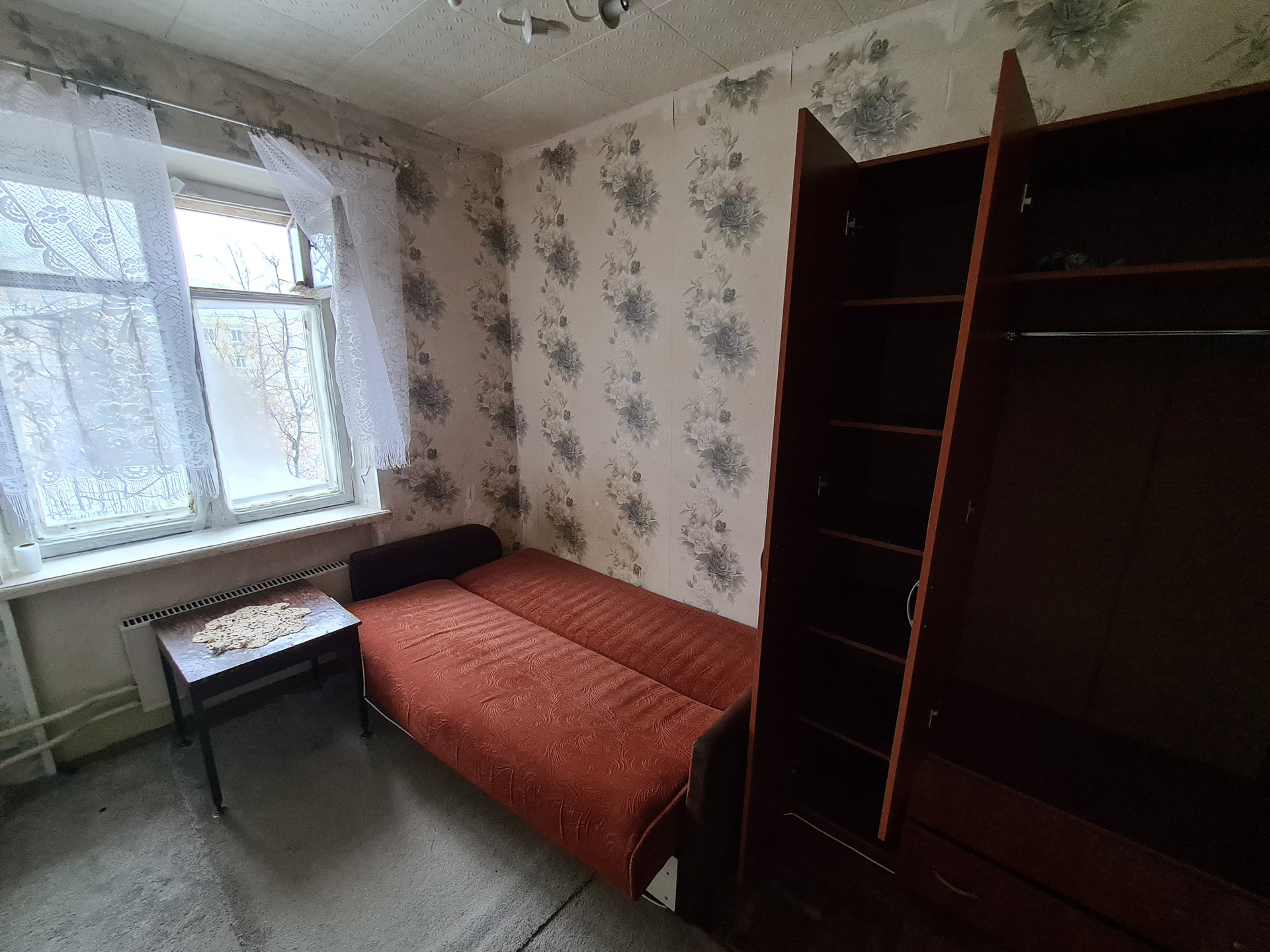 В комнате большой шкаф, раскладной диван, прикроватный столик. В соседней комнате проживает женщина с семилетним ребенком, тихо, спокойно. Метро в пешей доступности, около дома кинотеатр, продуктовые магазины, аптеки, во дворе достаточно мест для парковки. Возможны любые перестановки, любой ремонт, можно с животными