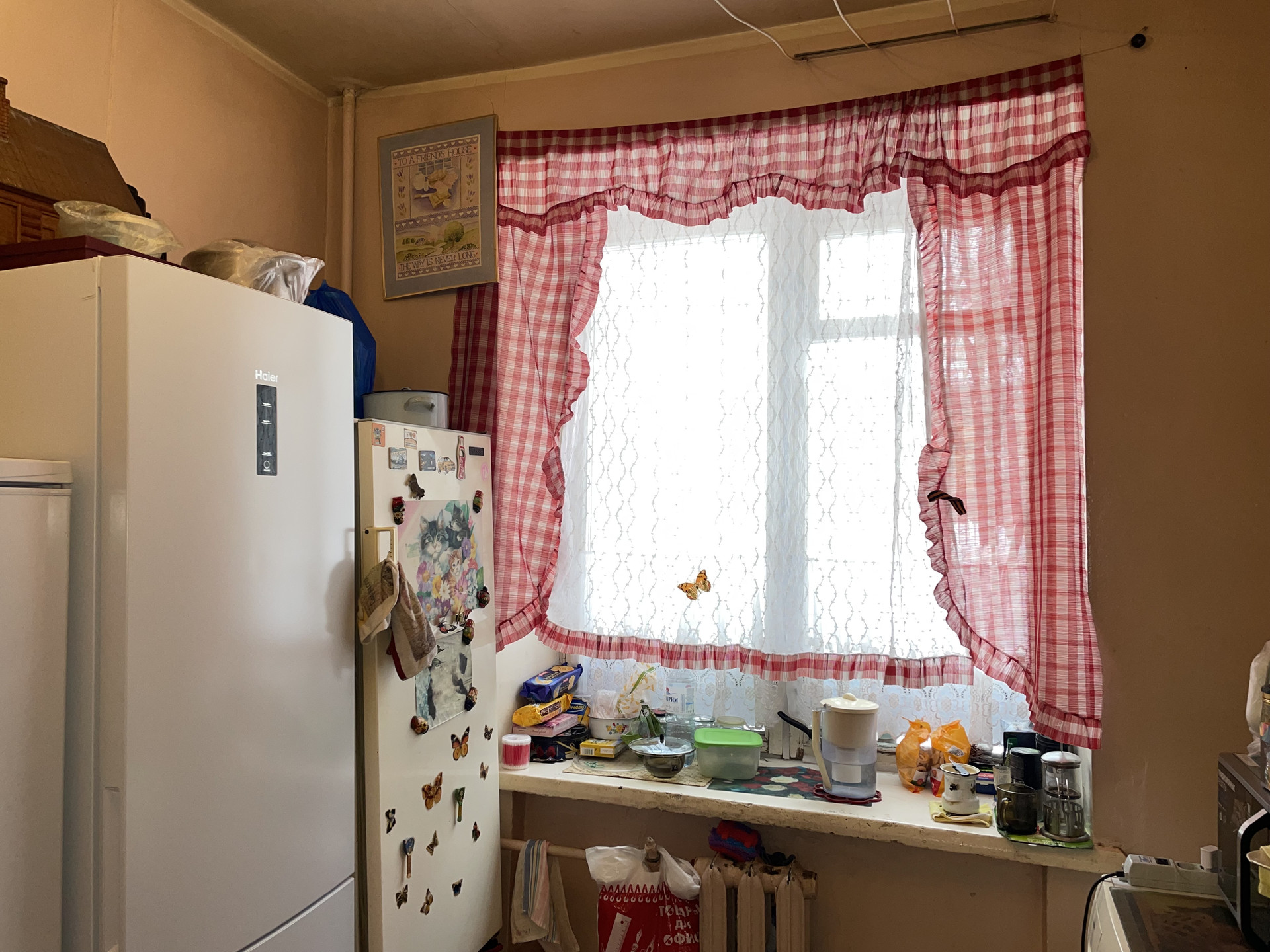 В комнате окно ПВХ с решеткой, на полу – паркет, теплые полы, высокие потолки 3 метра, хорошая входная дверь, холодильник, стиральная машина автомат. Комната в 2-х комнатной квартире общей площадью 55 кв. метров.
