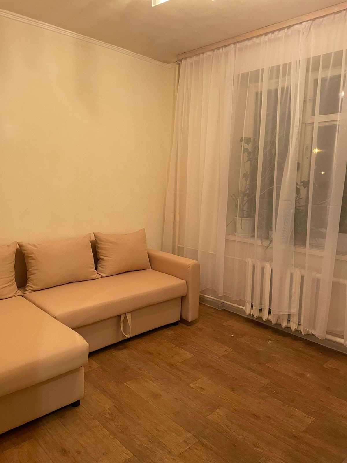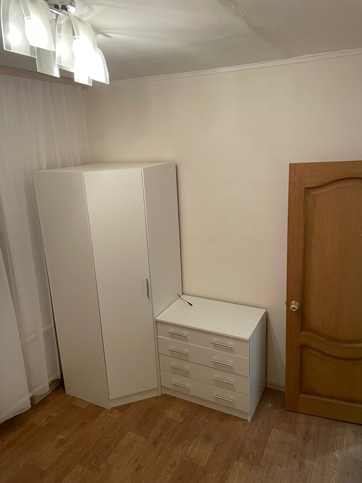 В комнате есть все необходимое для комфортной жизни: диван-кровать, шкаф, комод, телевизор.