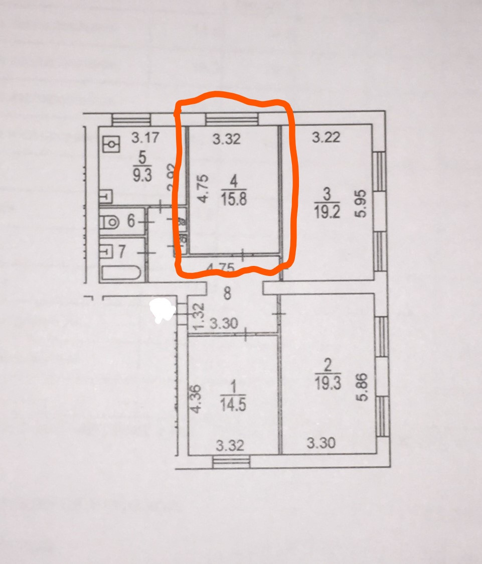 Жилая площадь 16 м2